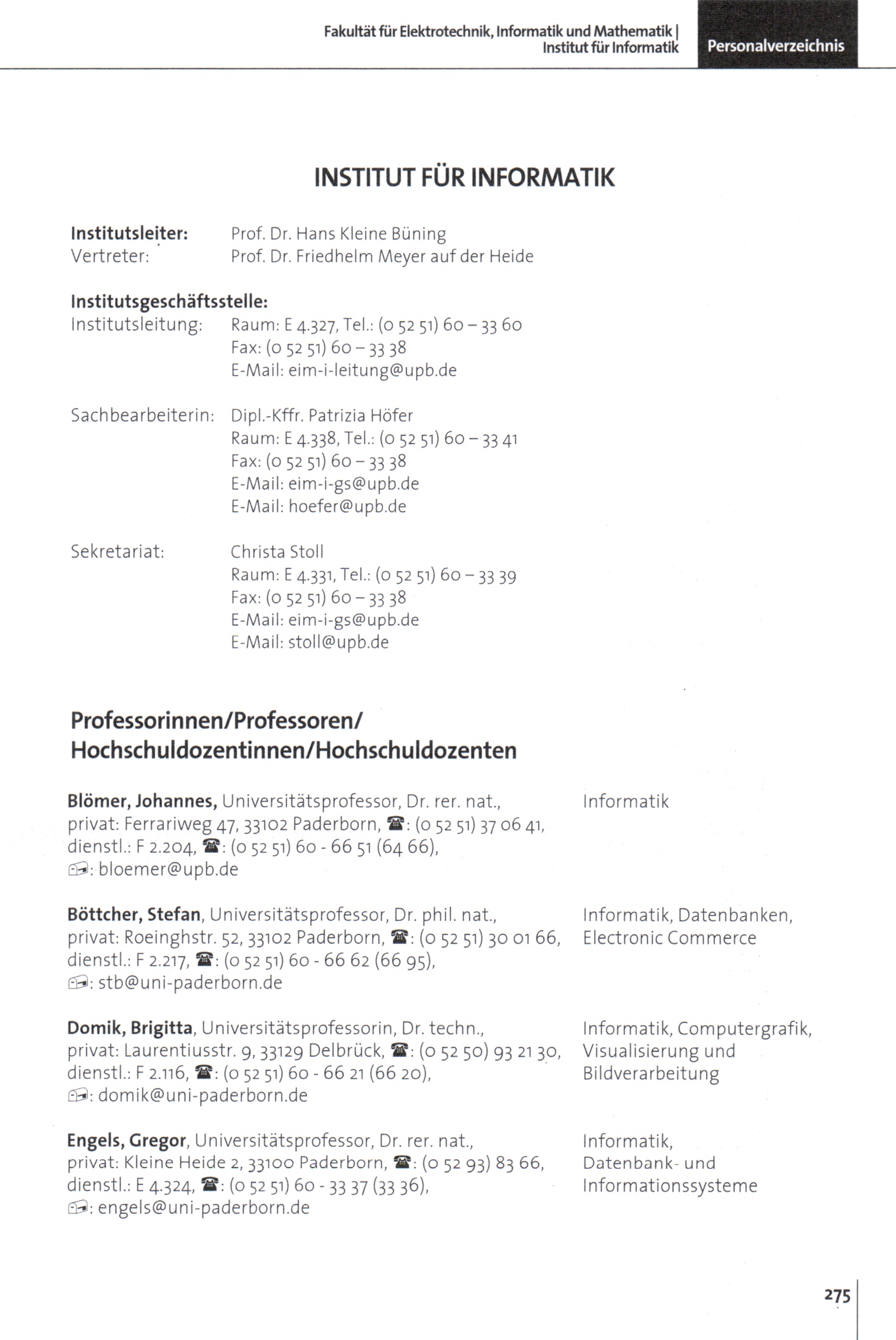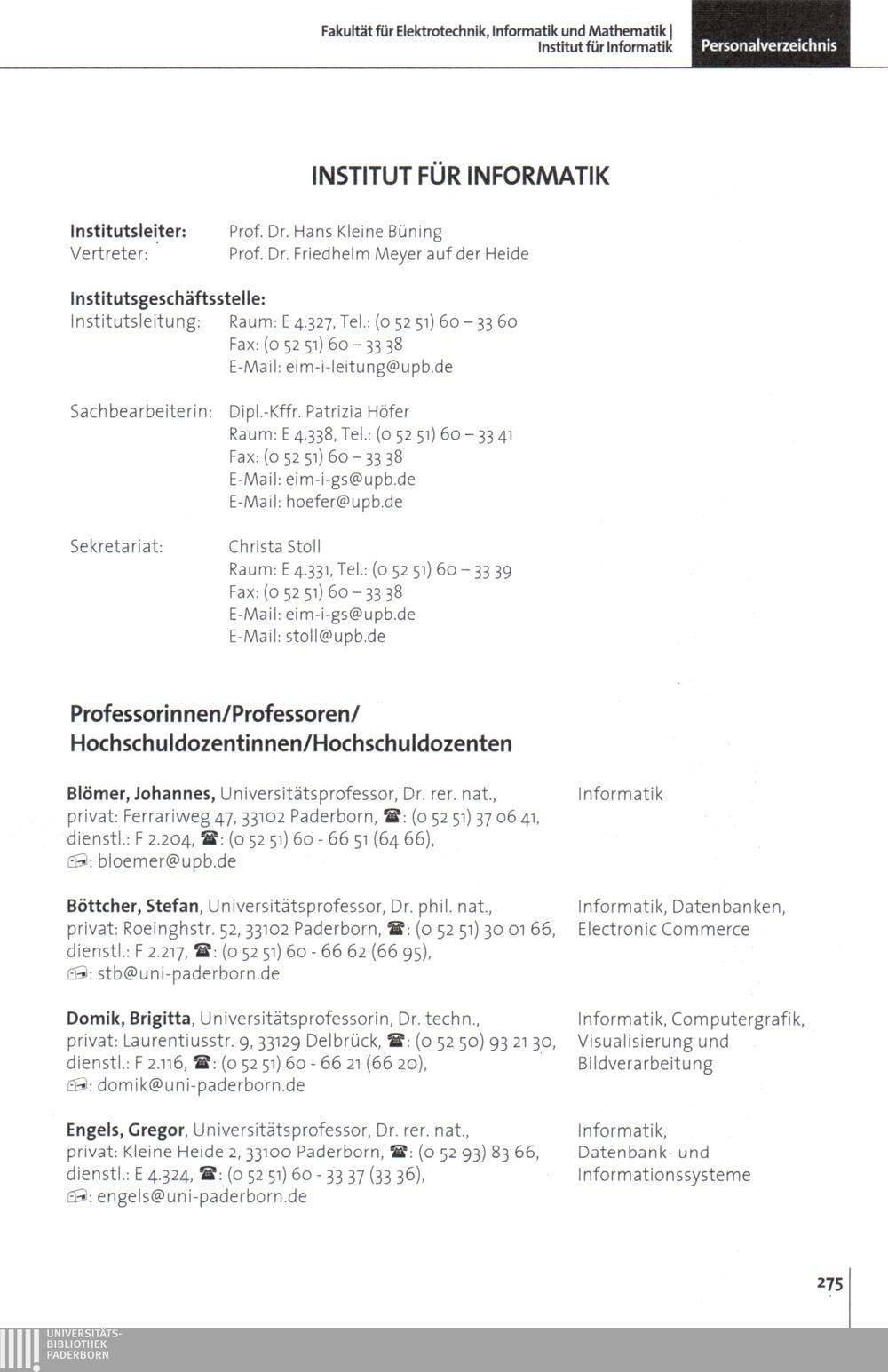 Personal- und Vorlesungsverzeichnis für die Universität Paderborn