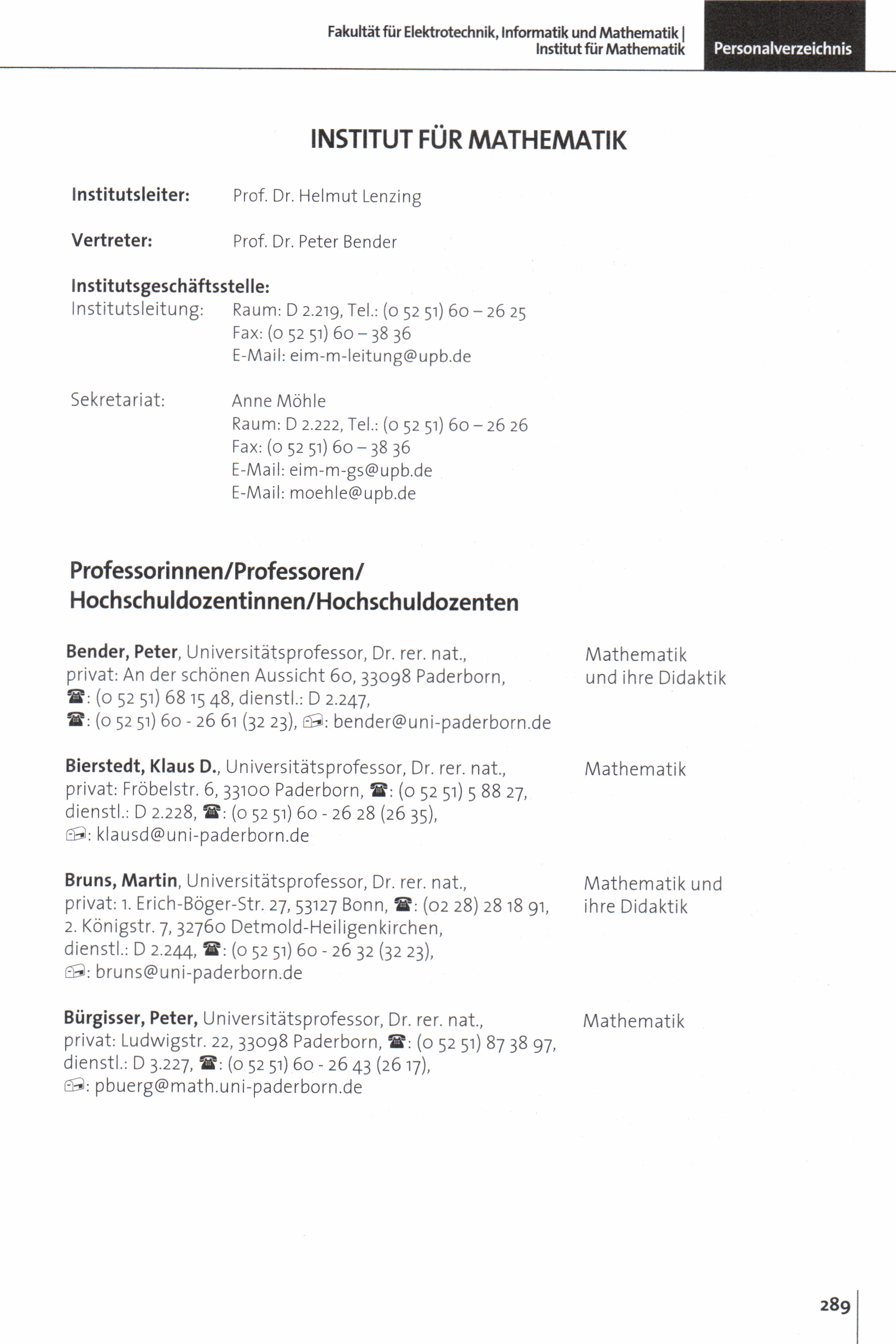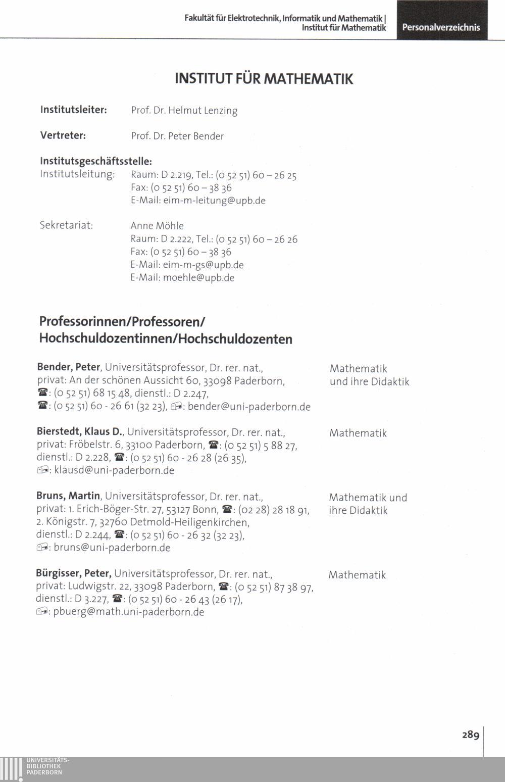 Personal- und Vorlesungsverzeichnis für die Universität Paderborn