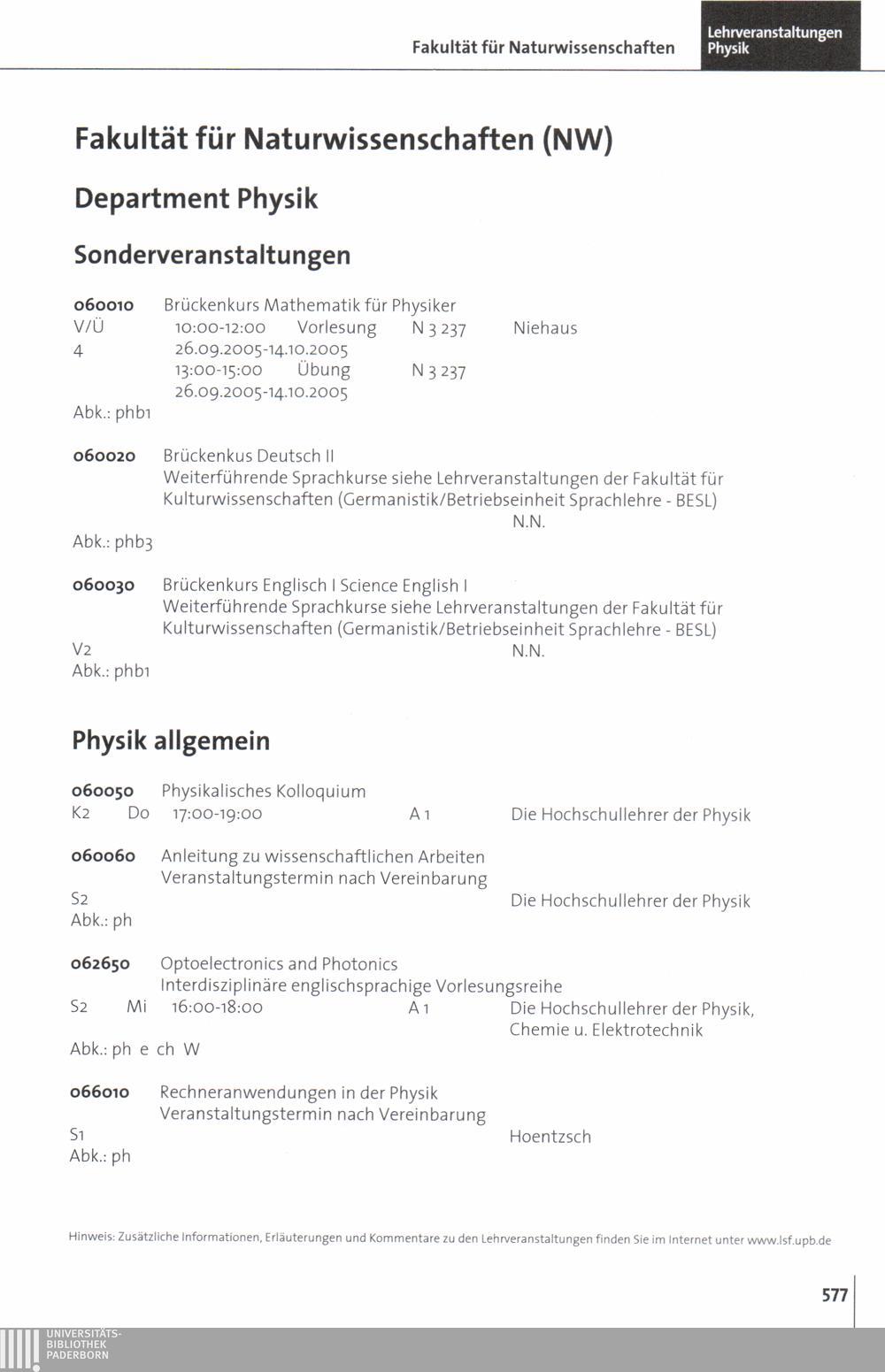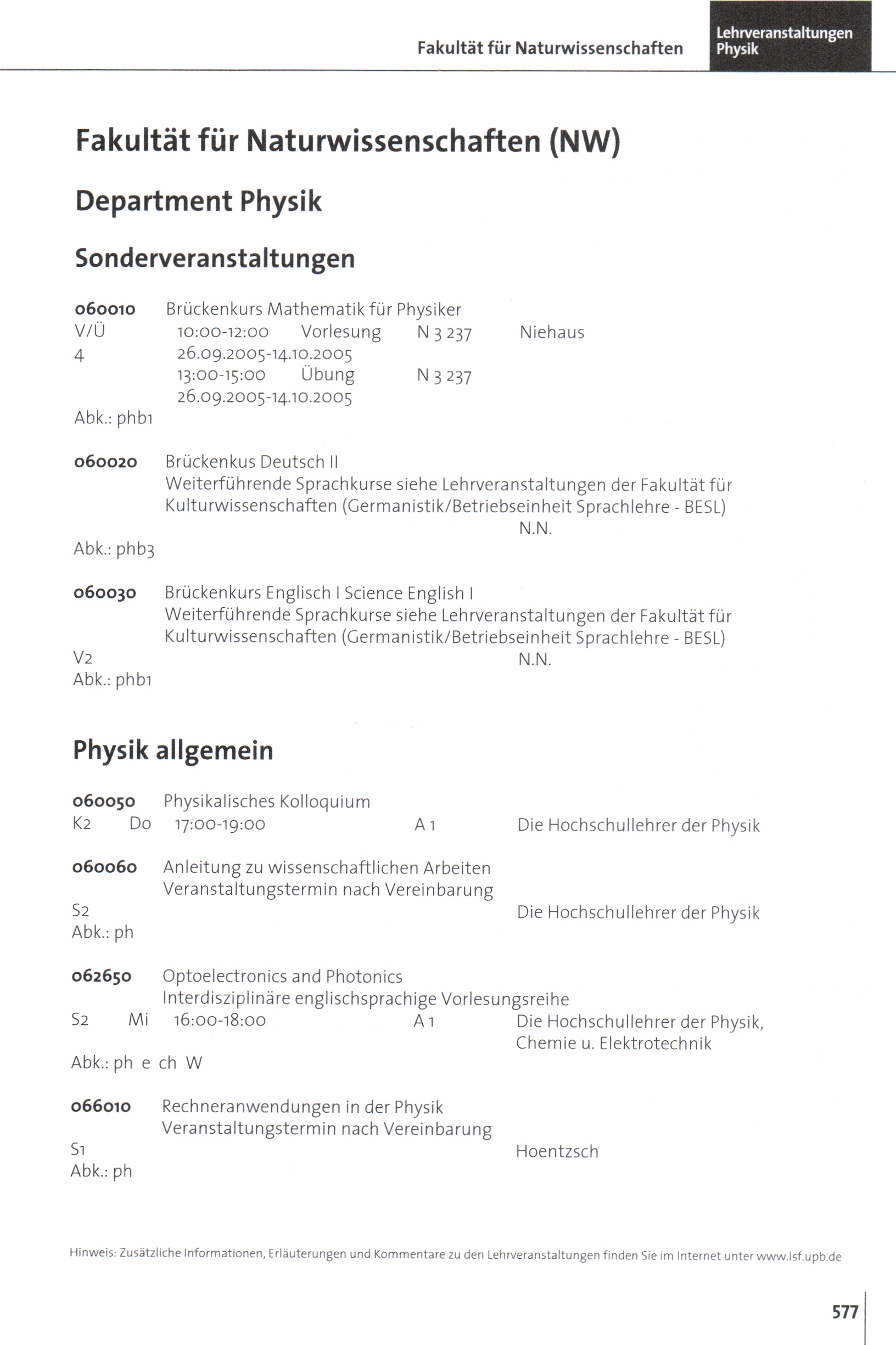 Personal- und Vorlesungsverzeichnis für die Universität Paderborn