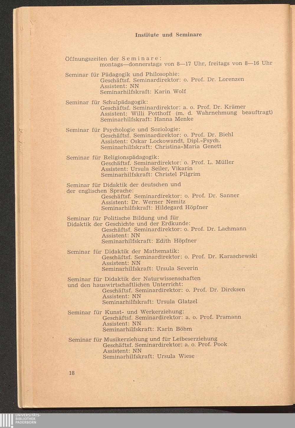 Institute und Seminare