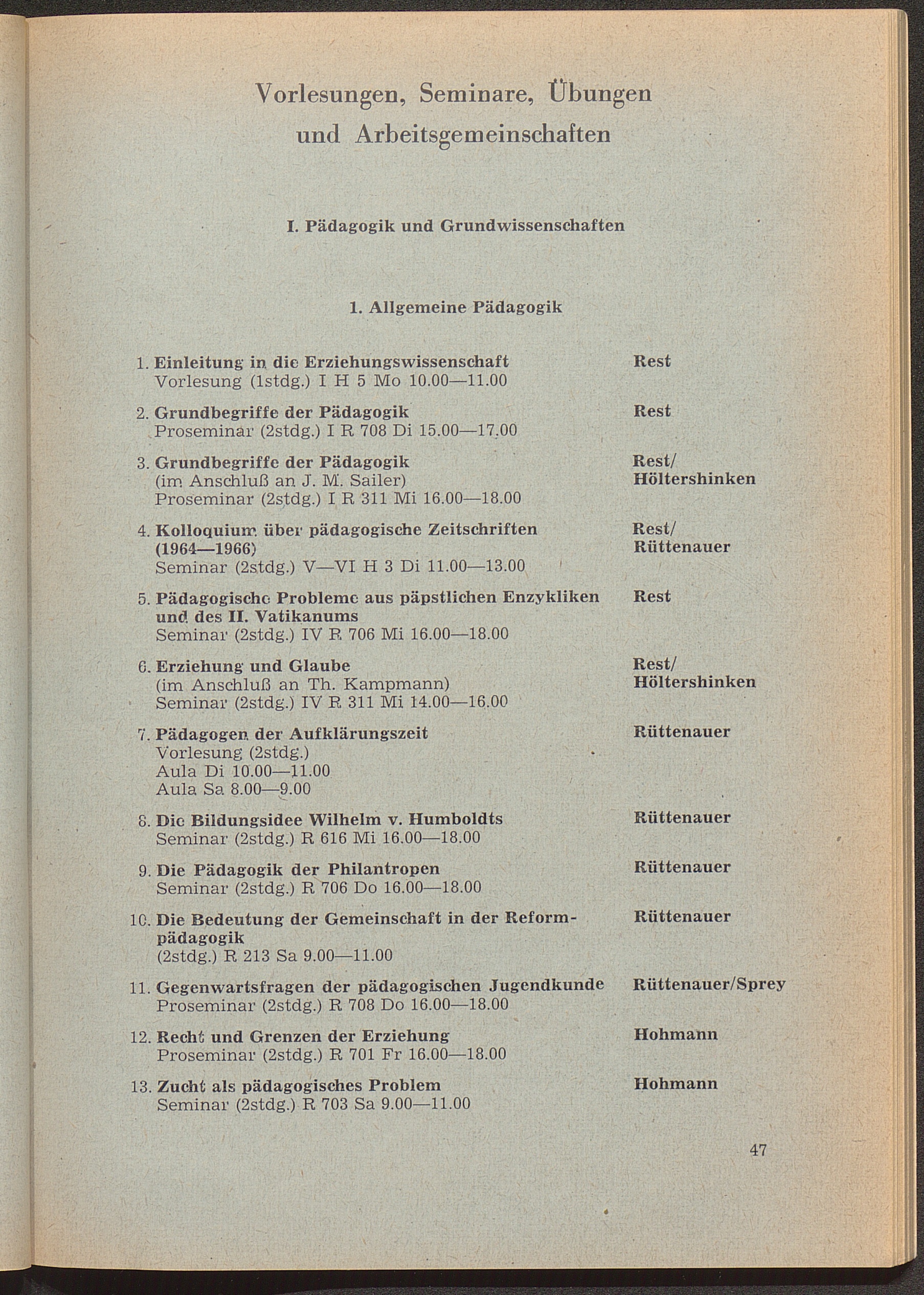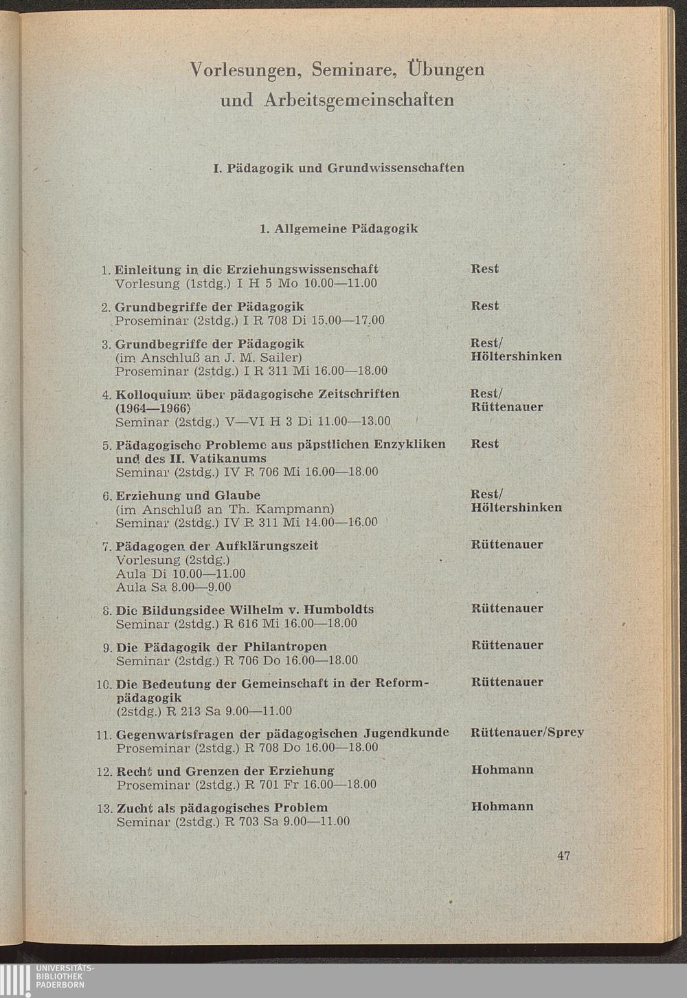 Vorlesungen, Seminare, Übungen und Arbeitsgemeinschaften