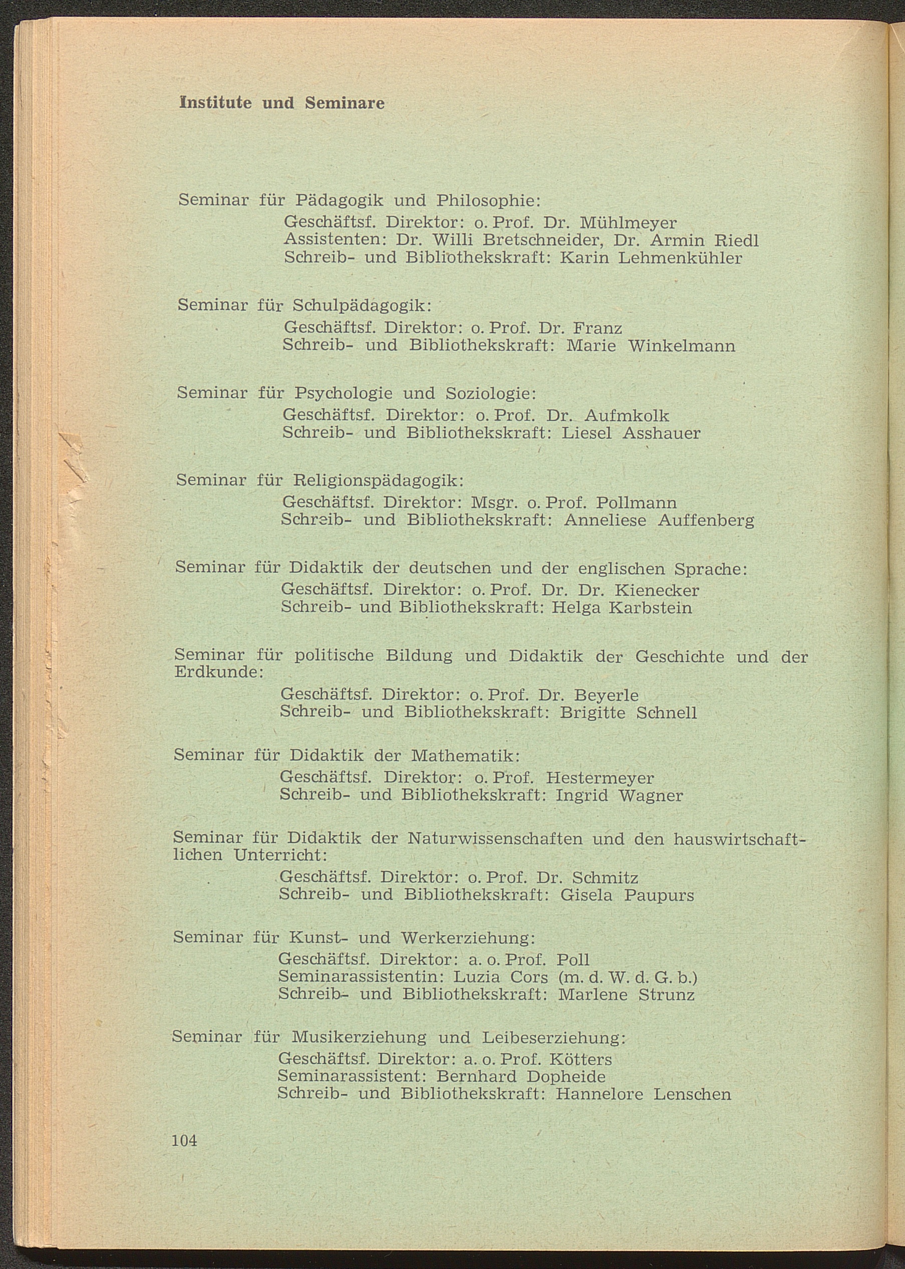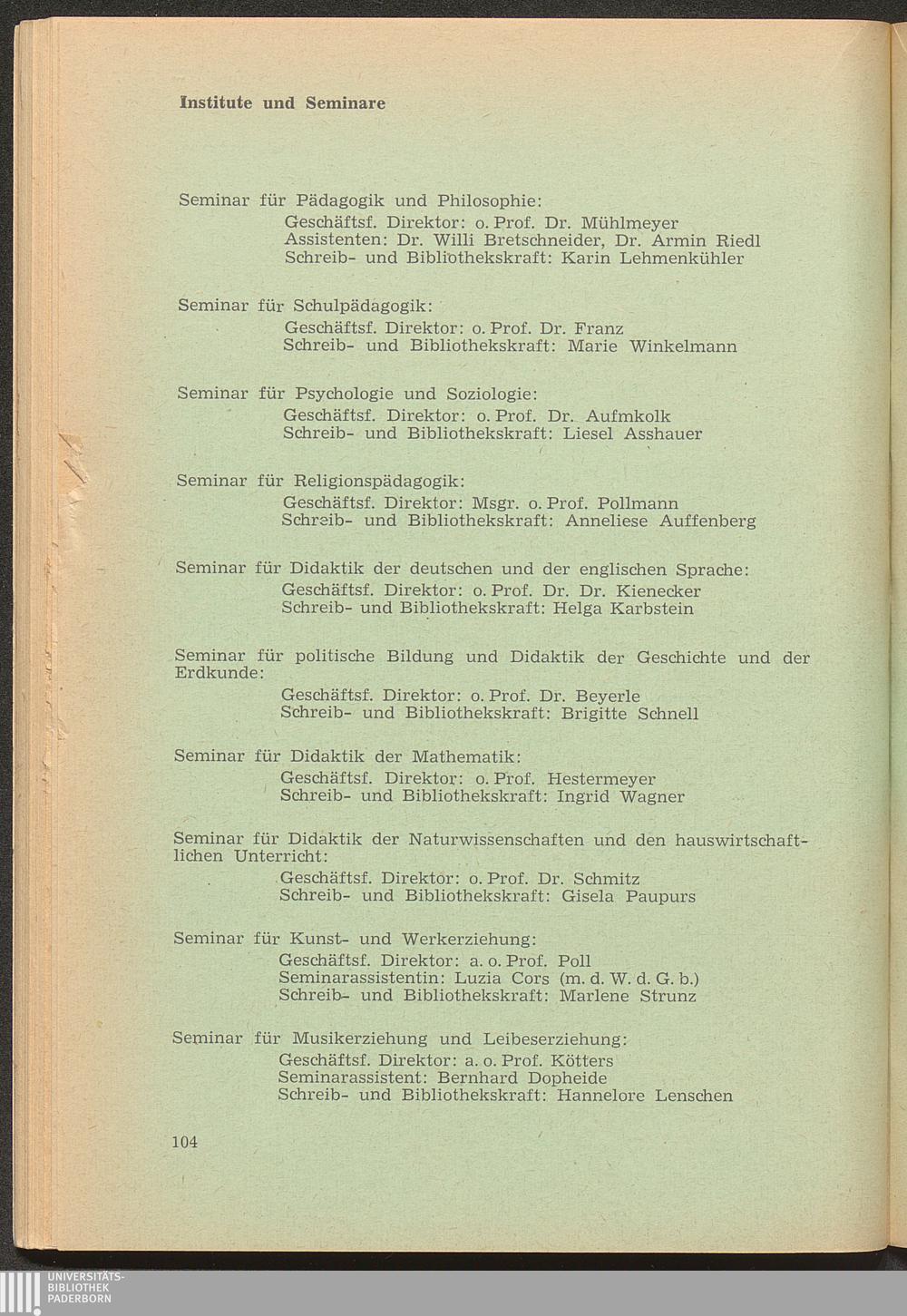 Institute und Seminare