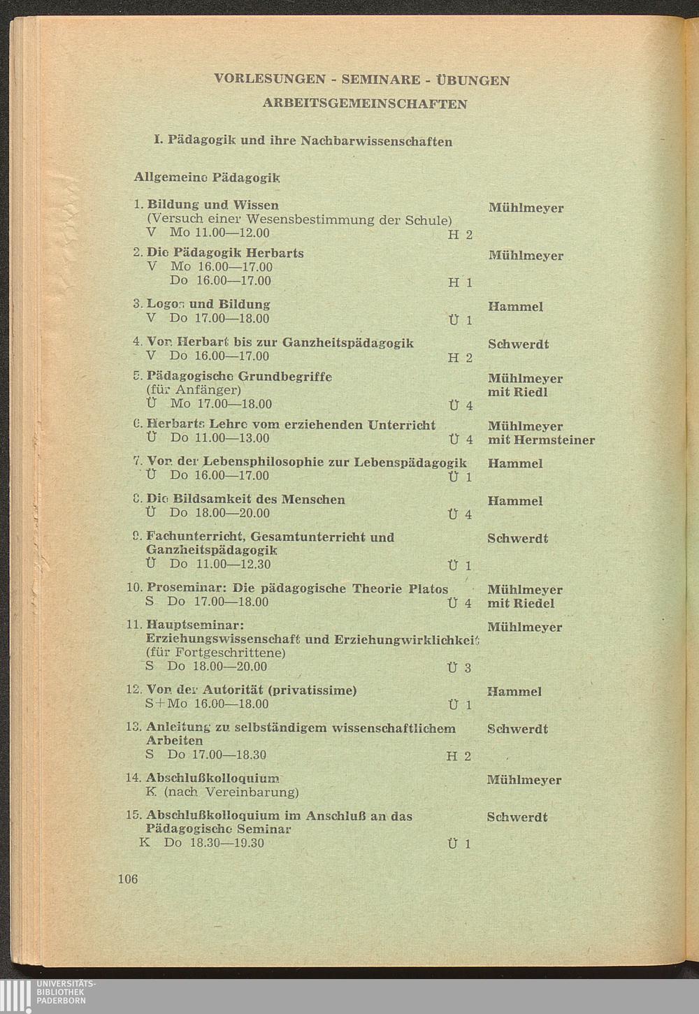 Vorlesungen, Seminare, Übungen, Arbeitsgemeinschaften