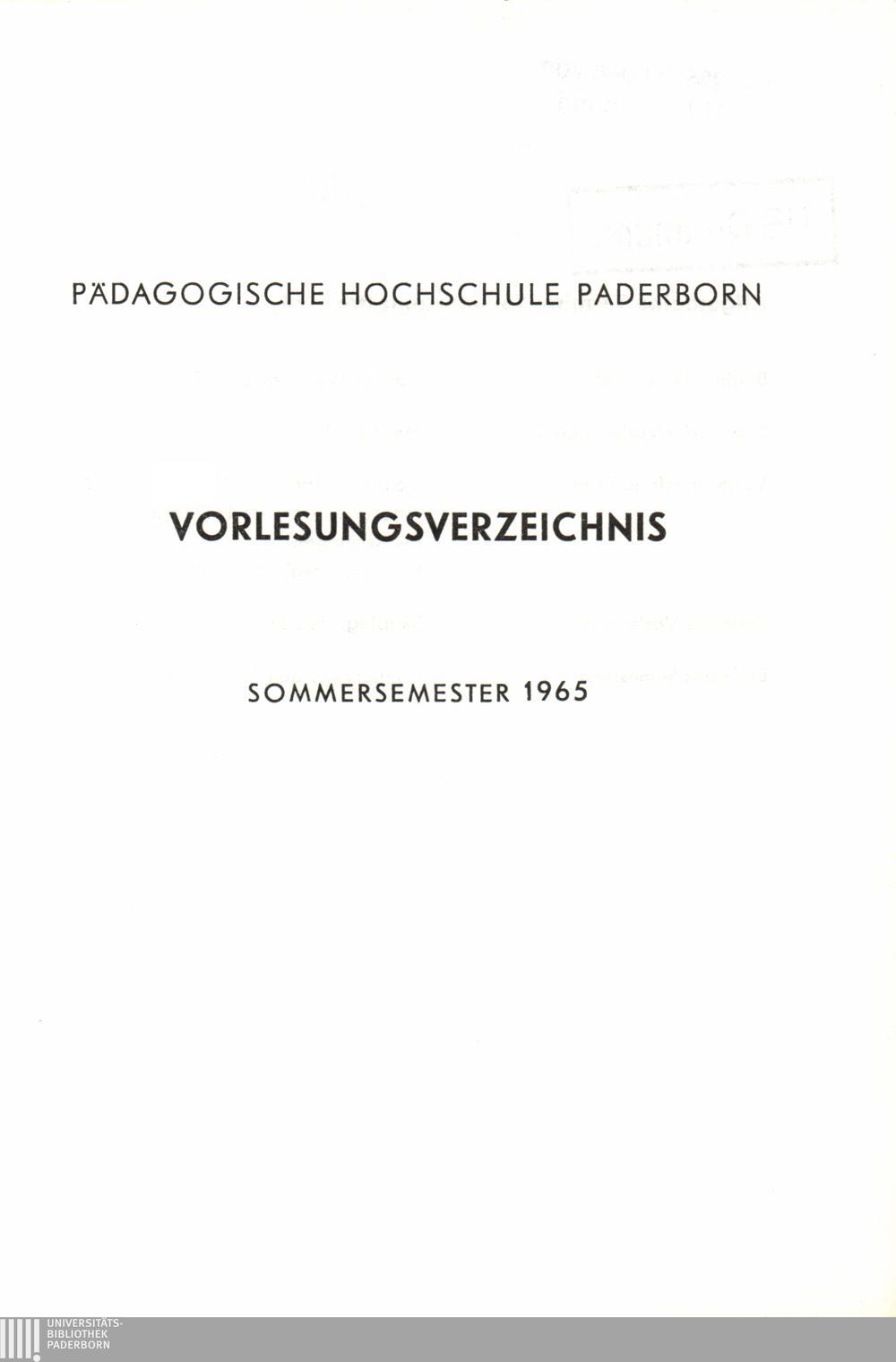 (1965) Sommersemester 1965