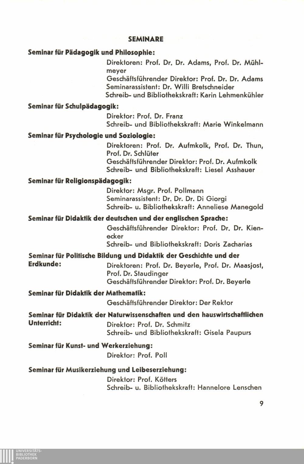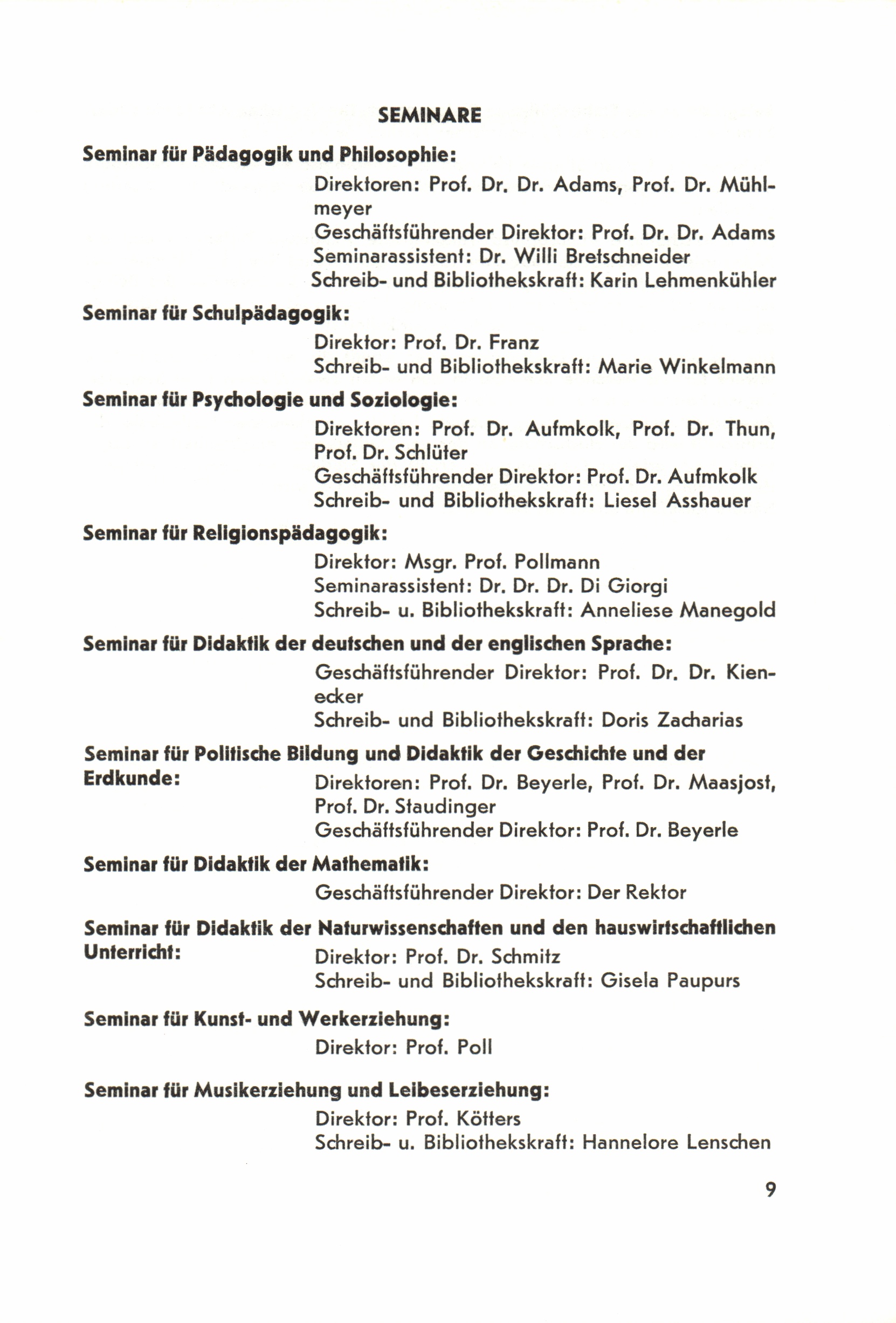 Vorlesungen, Seminare, Übungen, Arbeitsgemeinschaften