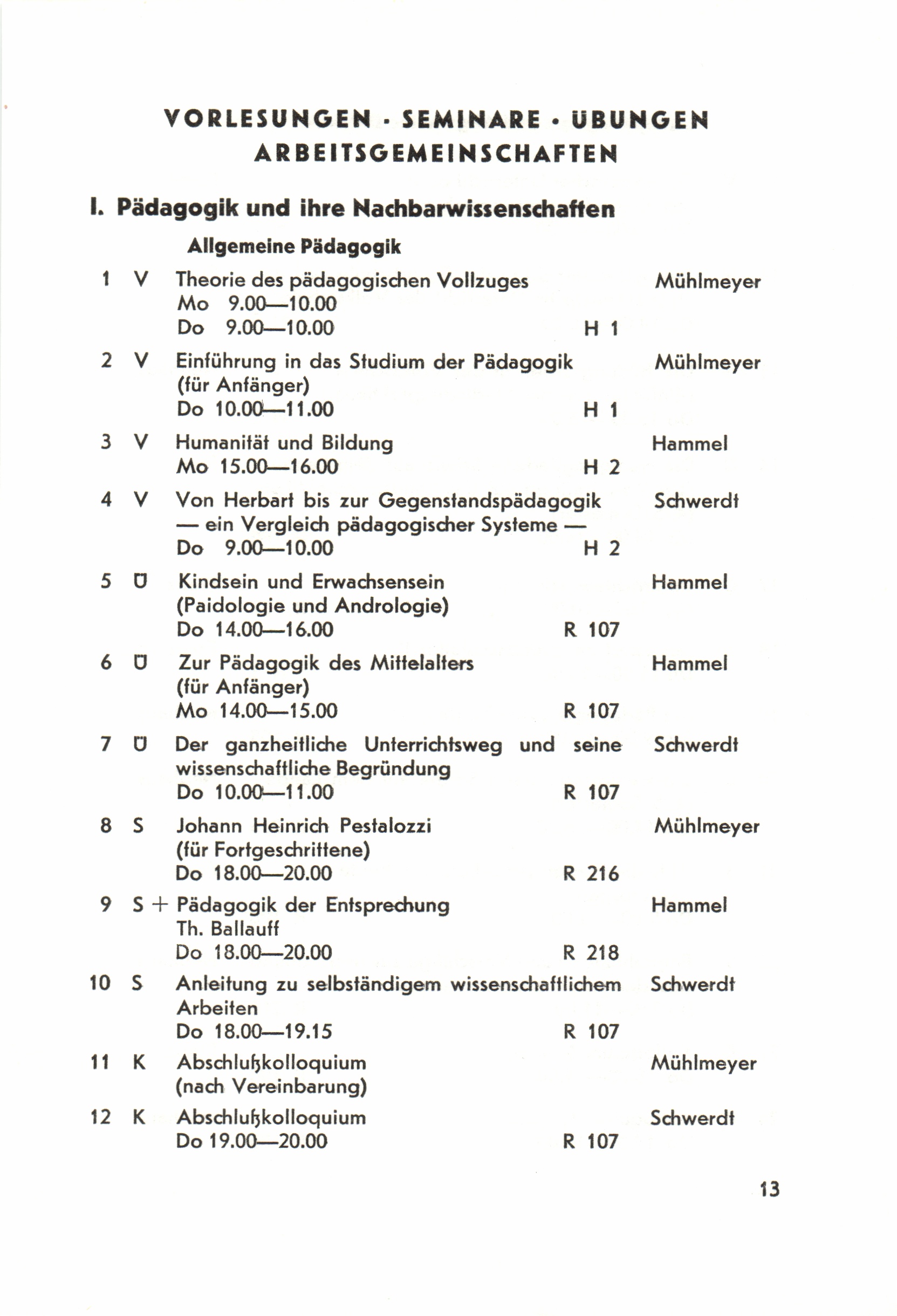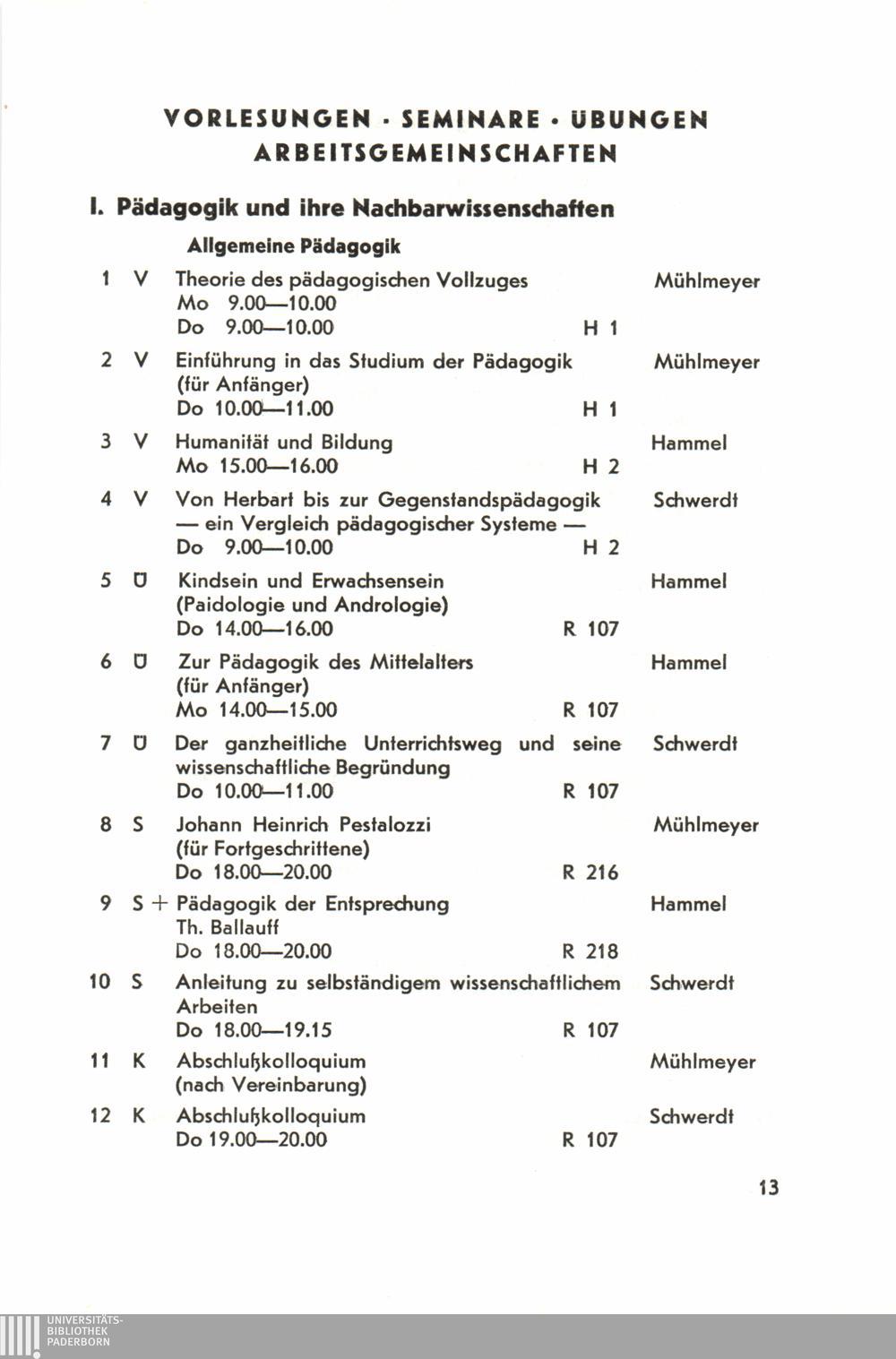 Vorlesungen, Seminare, Übungen, Arbeitsgemeinschaften