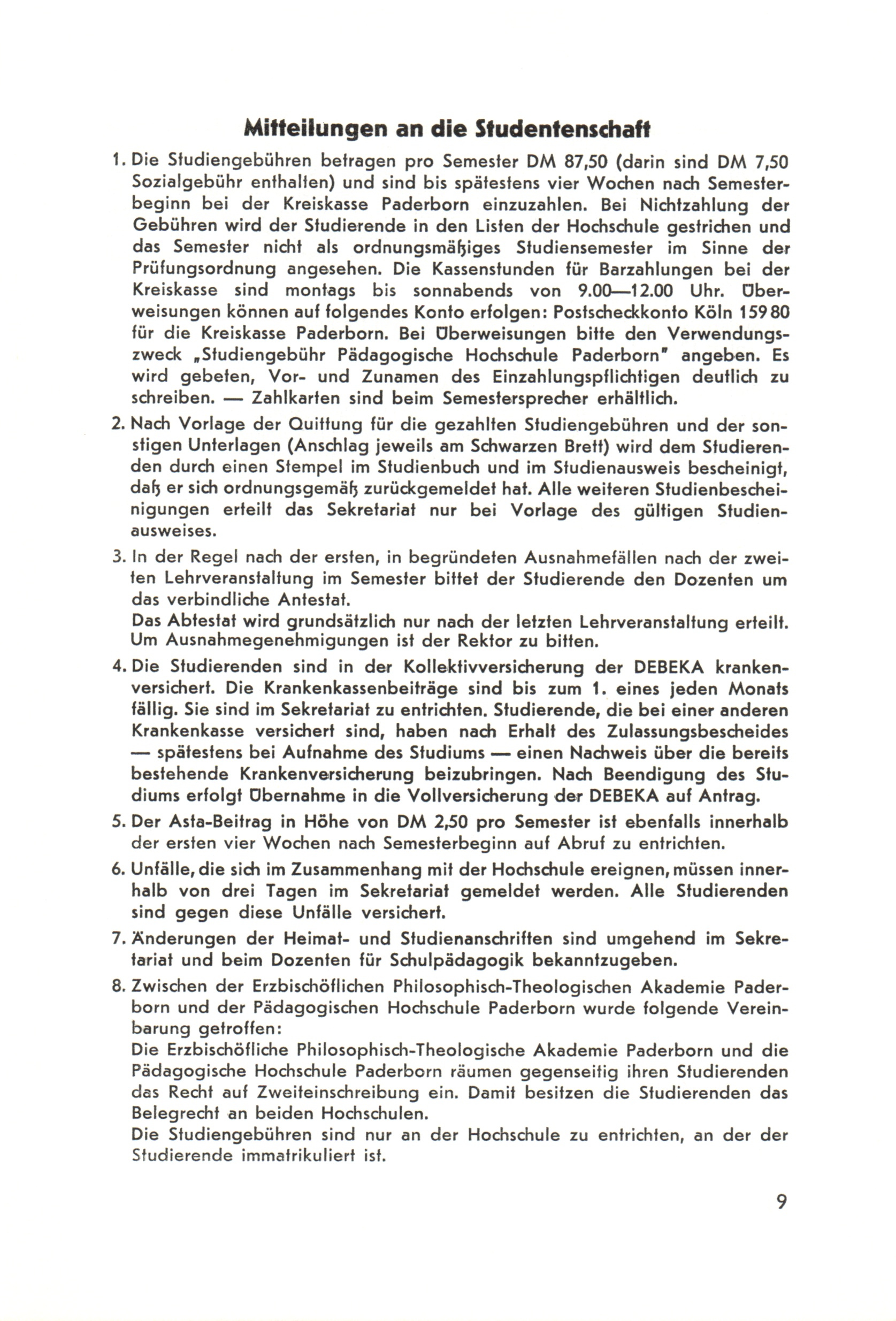 Mitteilungen an die Studentenschaft