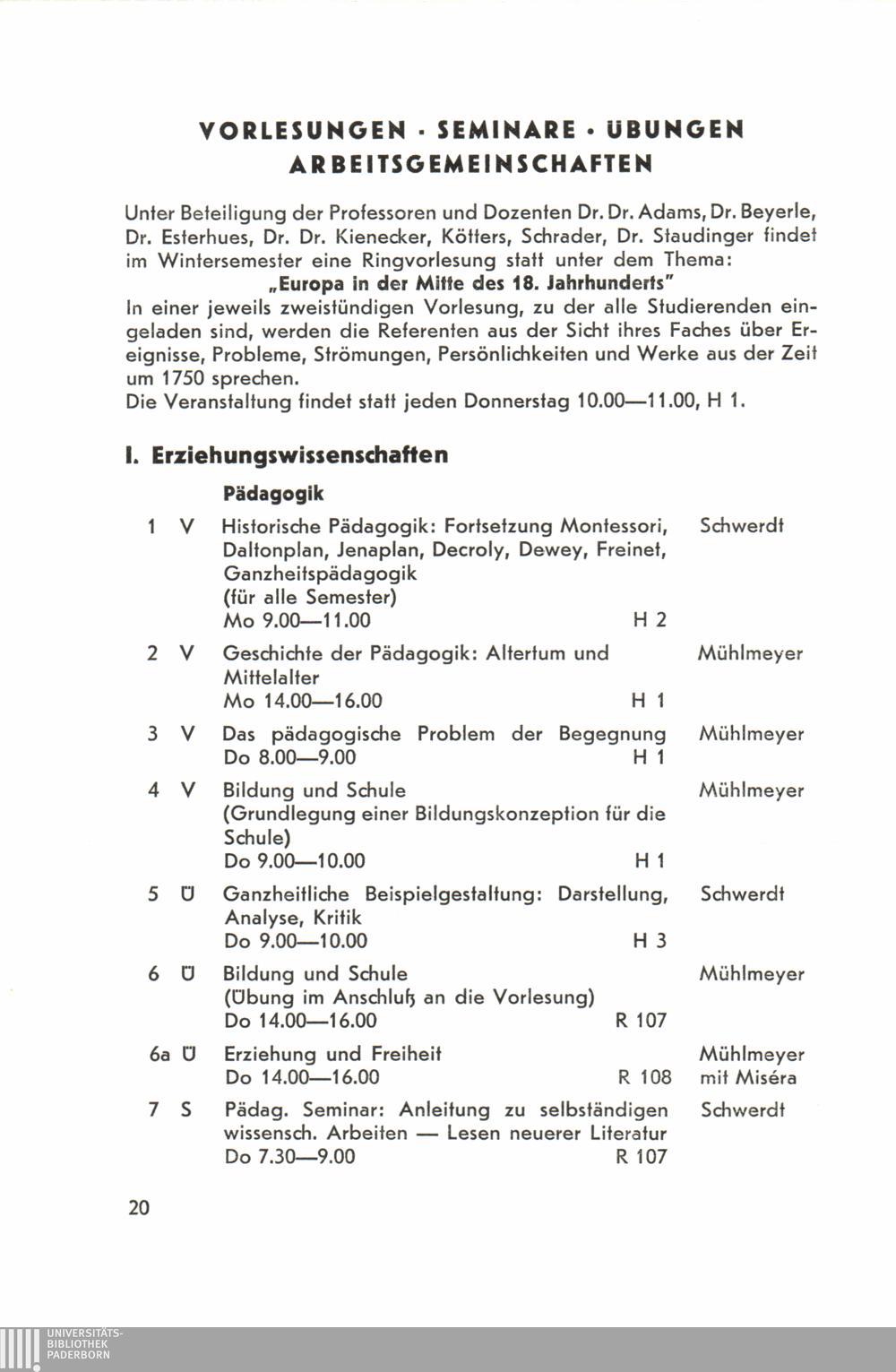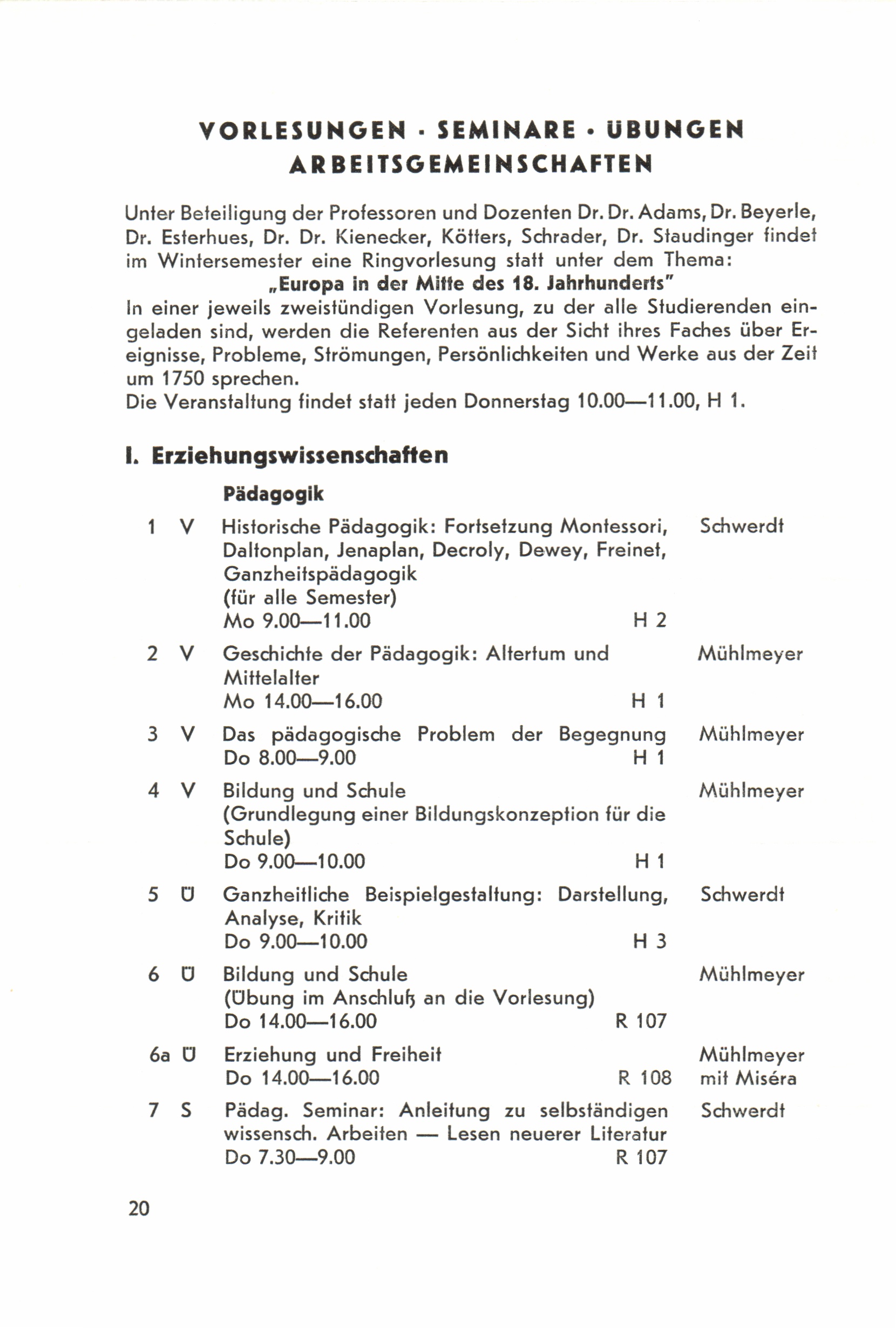 Vorlesungen, Seminare, Übungen, Arbeitsgemeinschaften