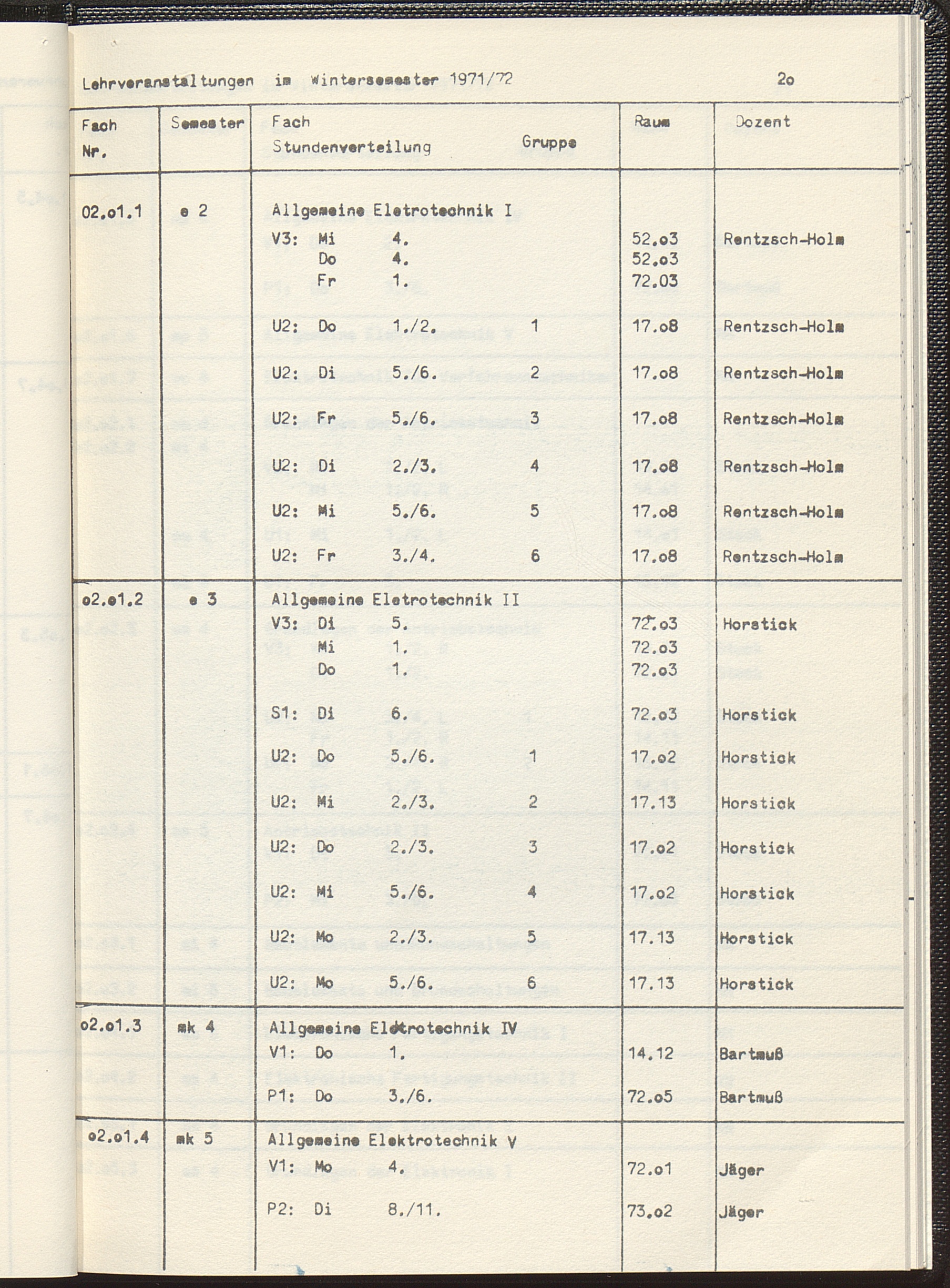 Pflichtfächer lt. Studienplan für 1. - 5. Semester