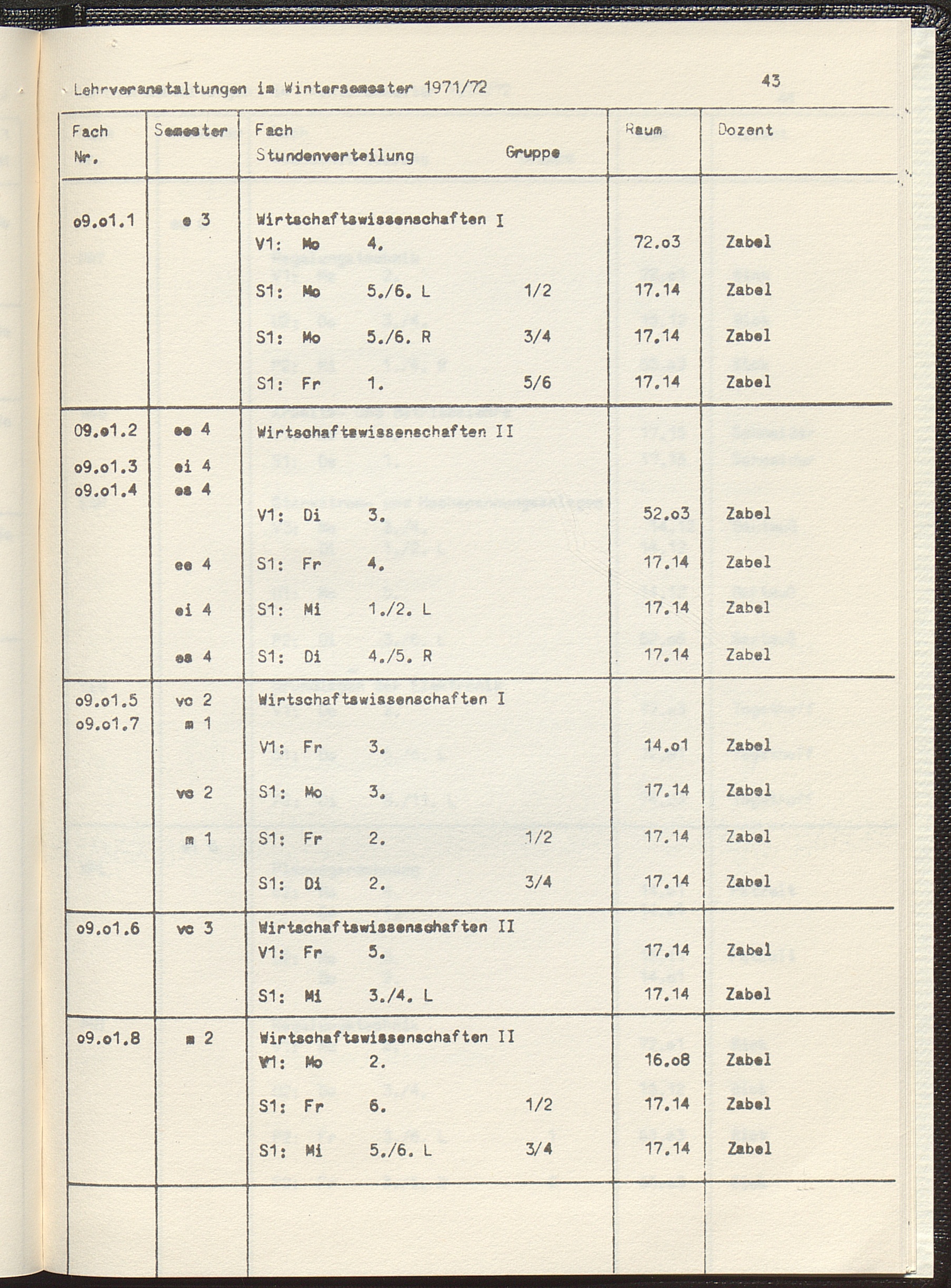 Pflichtfächer lt. Studienplan für 1. - 5. Semester