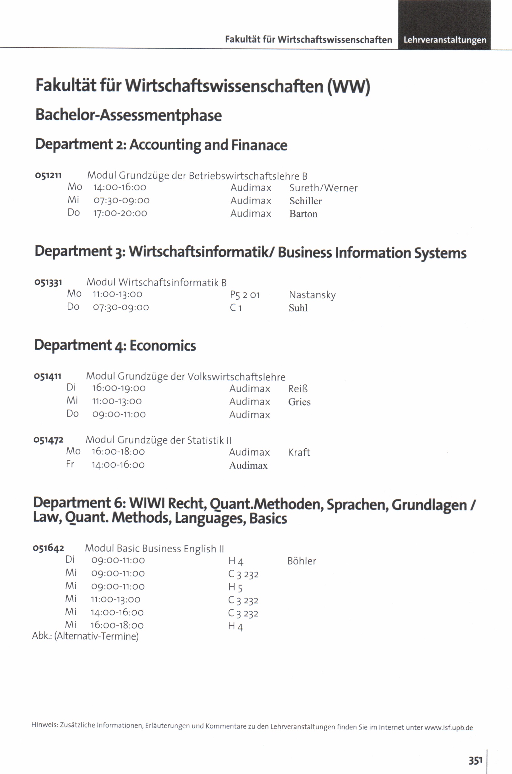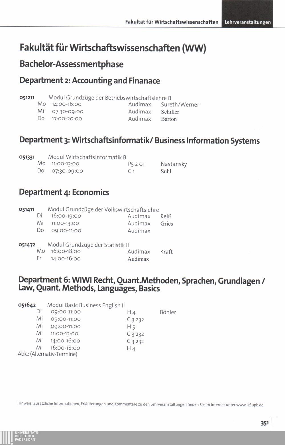 Personal- und Vorlesungsverzeichnis für die Universität Paderborn