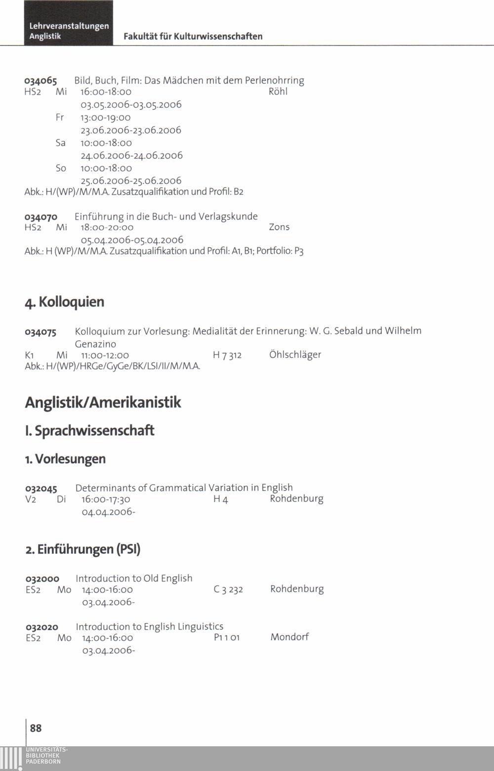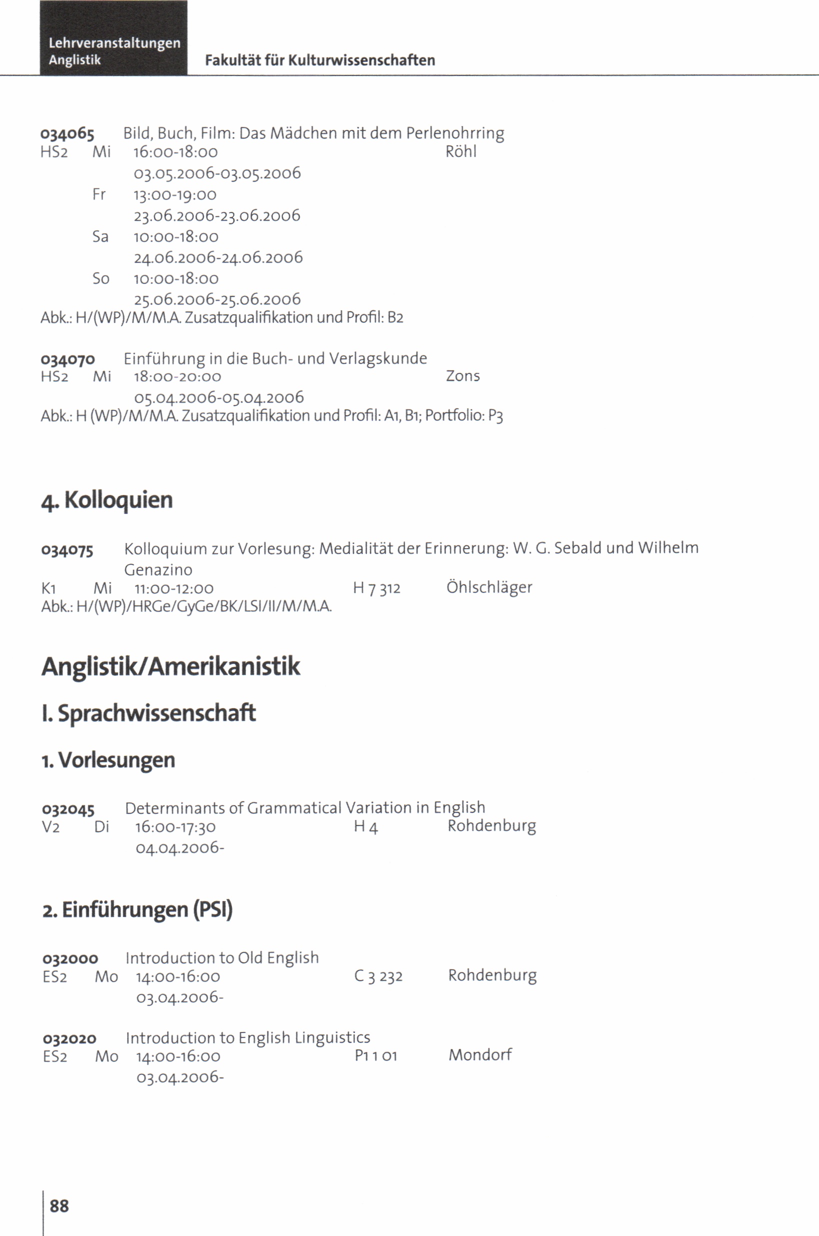 (2006) Sommersemester 2006
