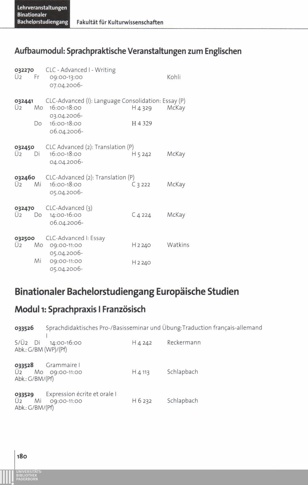 Personal- und Vorlesungsverzeichnis für die Universität Paderborn