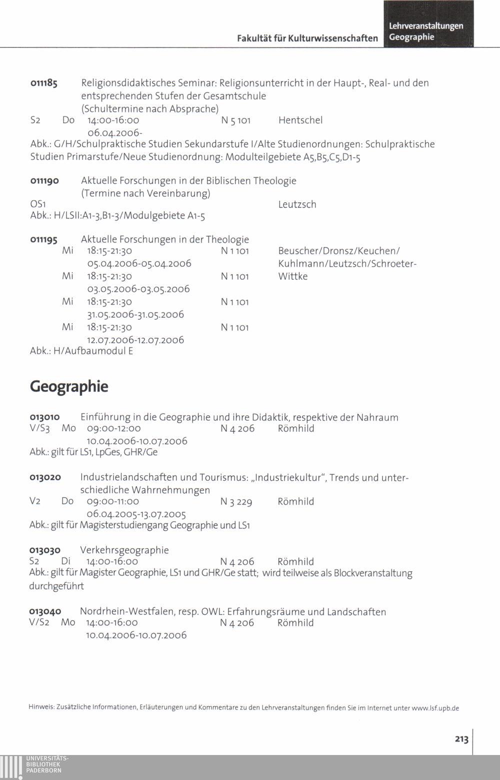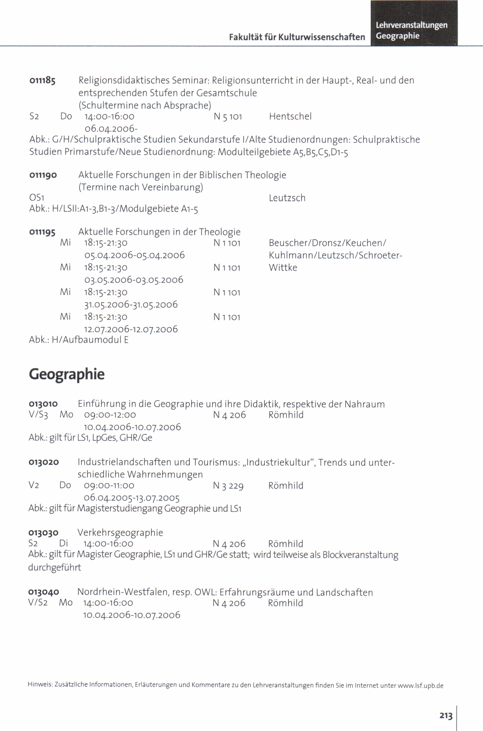 Personal- und Vorlesungsverzeichnis für die Universität Paderborn
