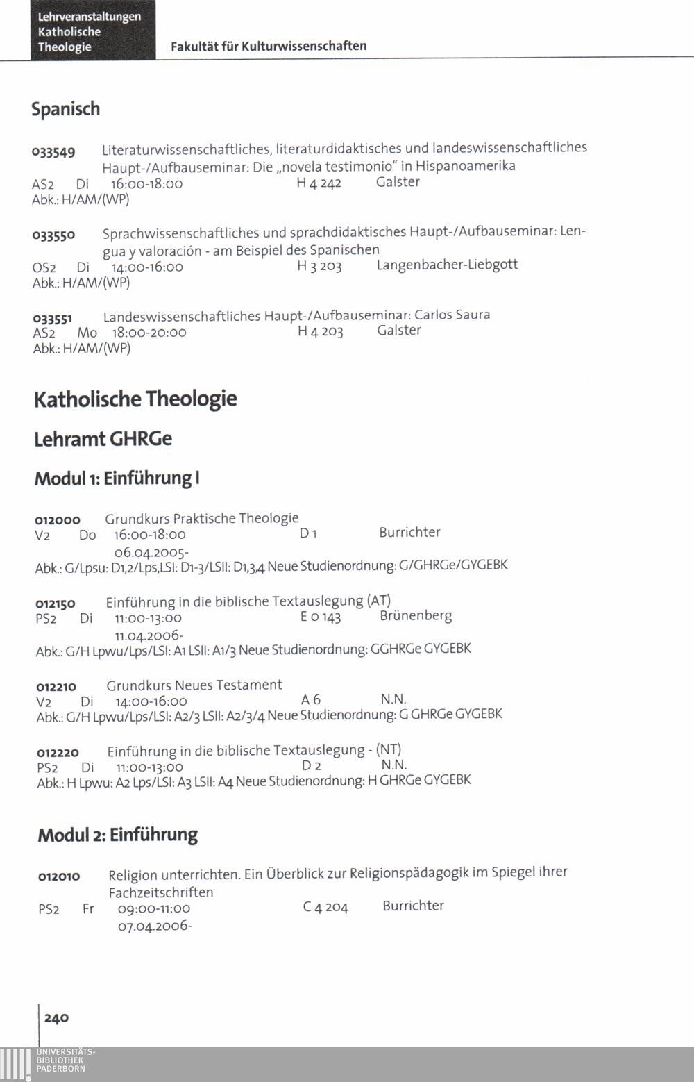 Personal- und Vorlesungsverzeichnis für die Universität Paderborn