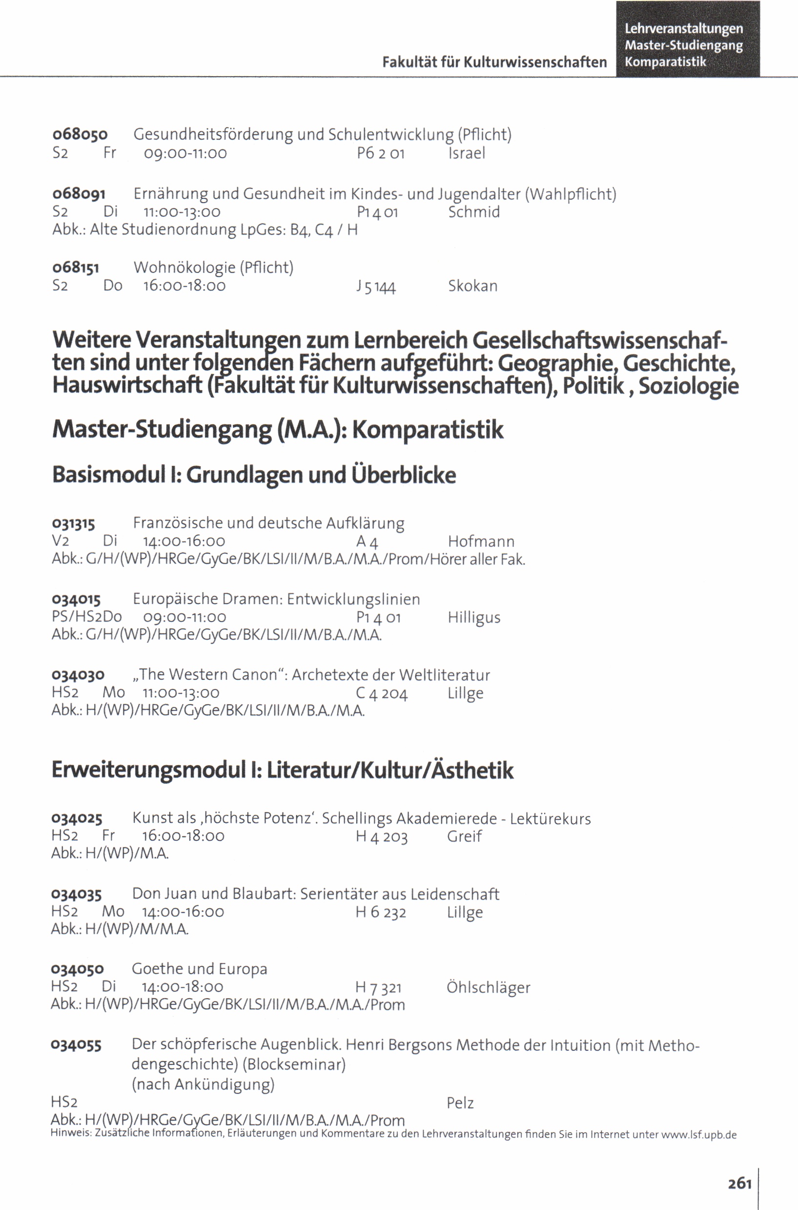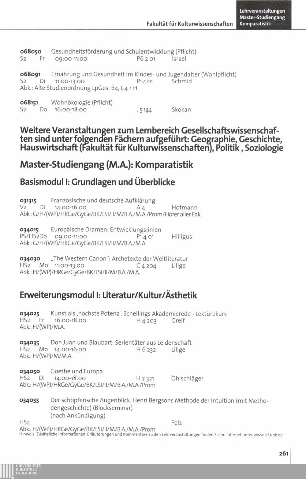 Personal- und Vorlesungsverzeichnis für die Universität Paderborn