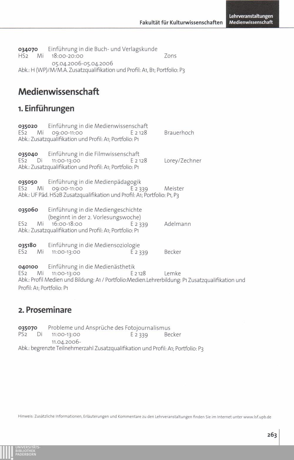 Personal- und Vorlesungsverzeichnis für die Universität Paderborn