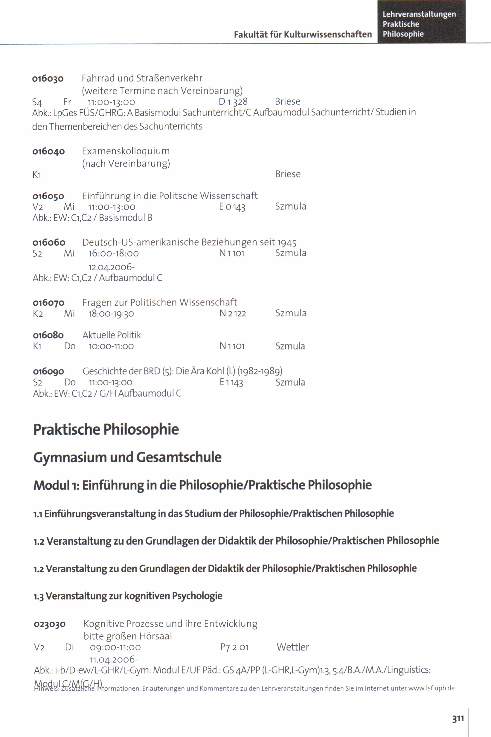 Personal- und Vorlesungsverzeichnis für die Universität Paderborn
