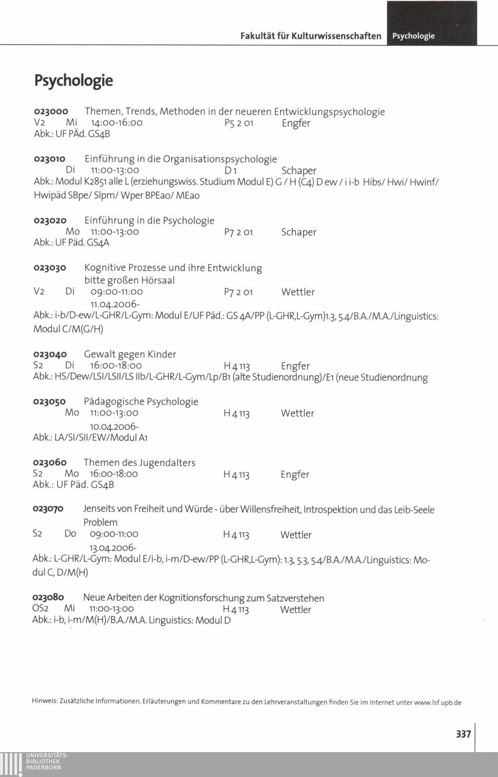 Personal- und Vorlesungsverzeichnis für die Universität Paderborn
