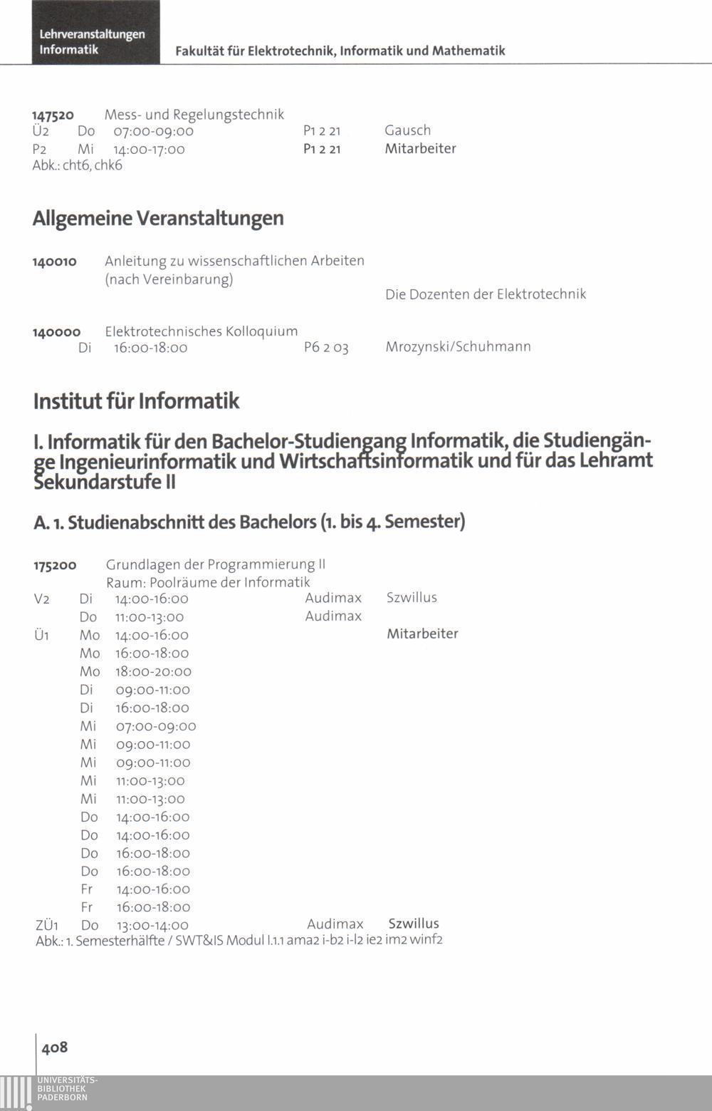 Personal- und Vorlesungsverzeichnis für die Universität Paderborn