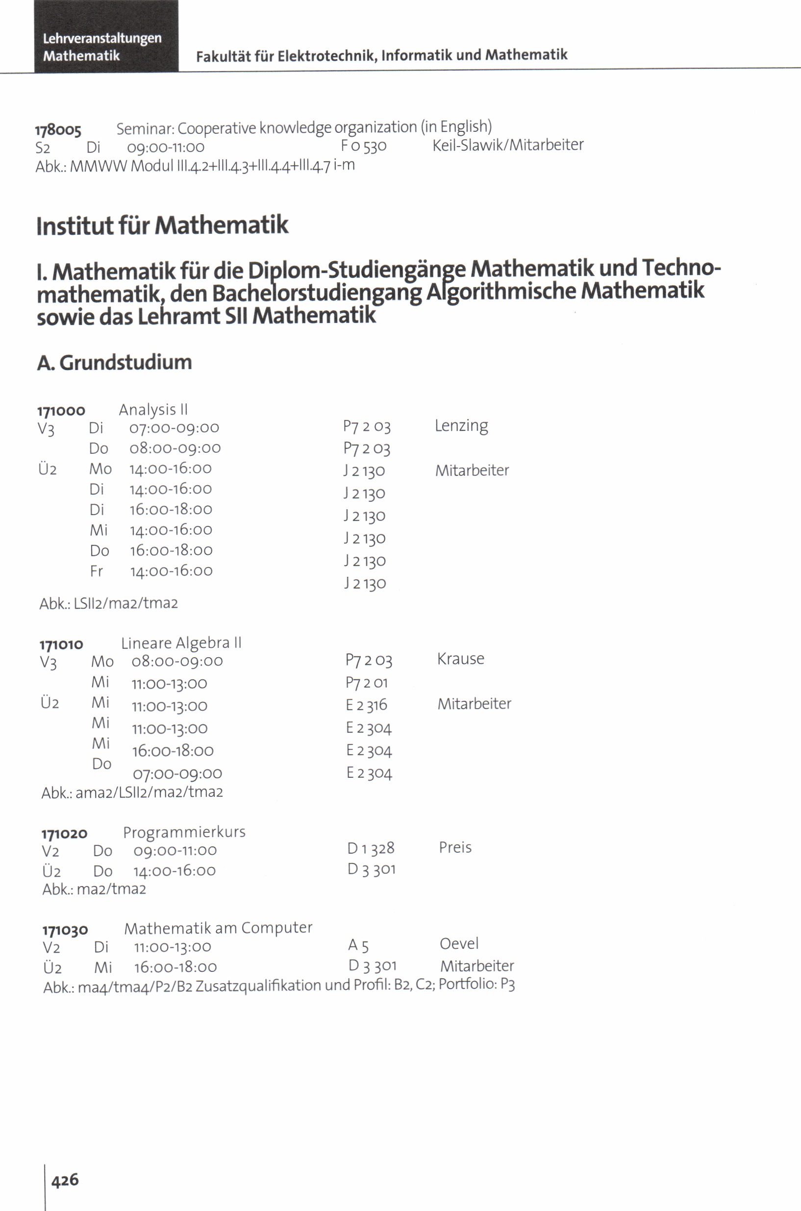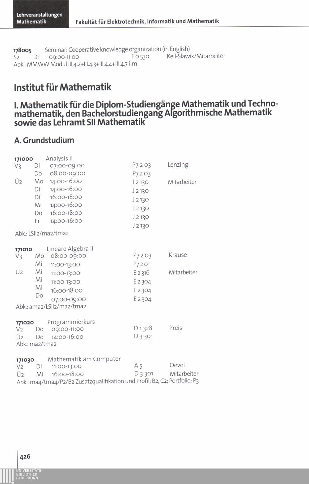 Personal- und Vorlesungsverzeichnis für die Universität Paderborn