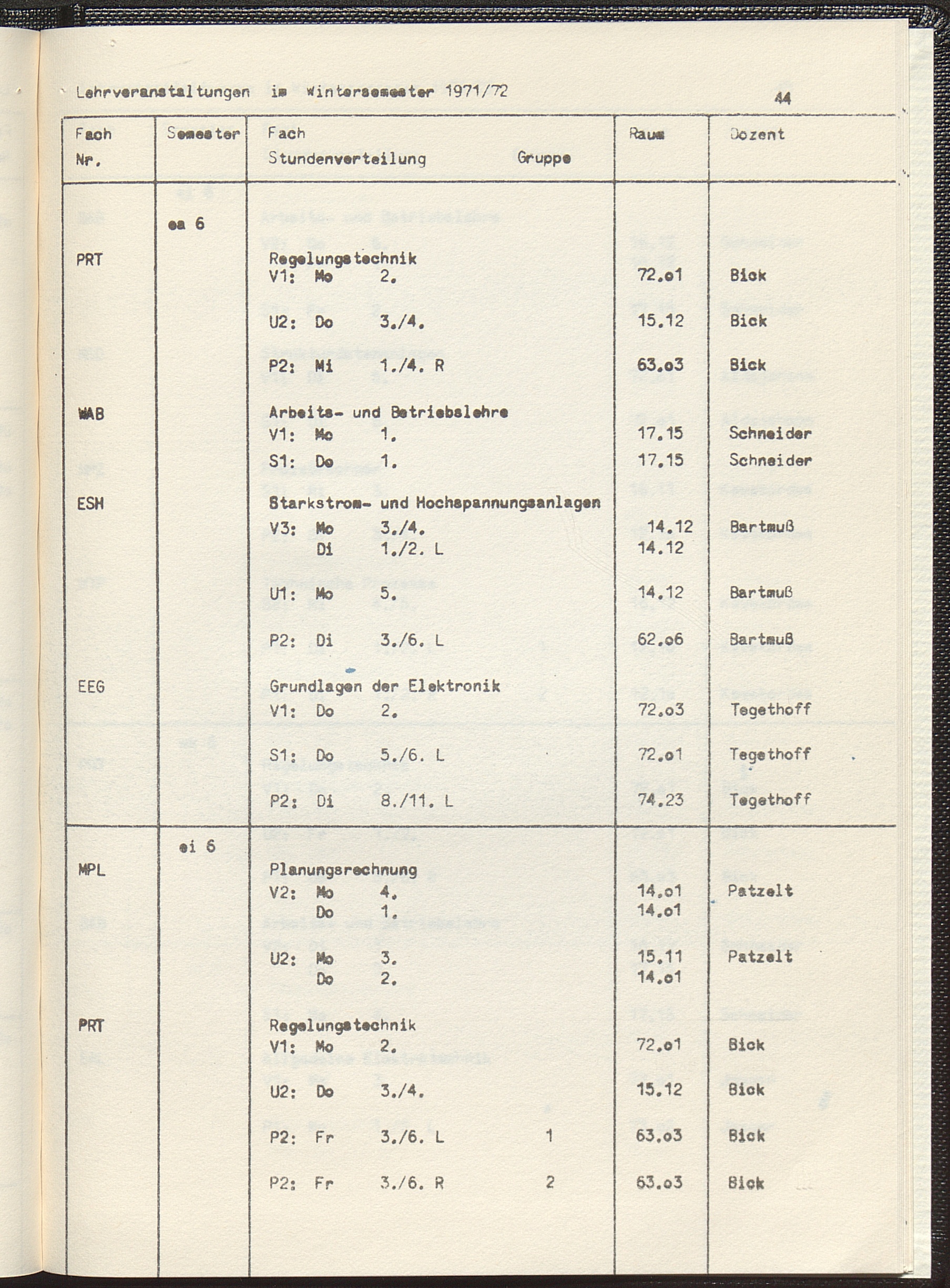 (1971-1972) Wintersemester 1971/72