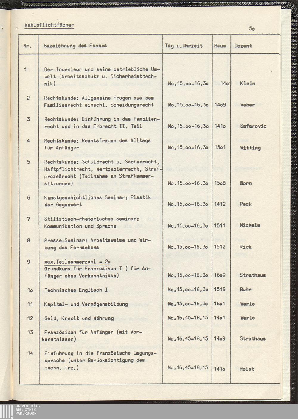 Wahlpflichtfächer