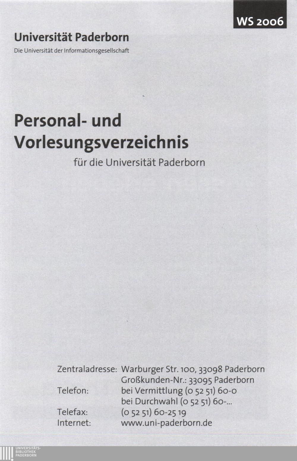 Personal- und Vorlesungsverzeichnis für die Universität Paderborn