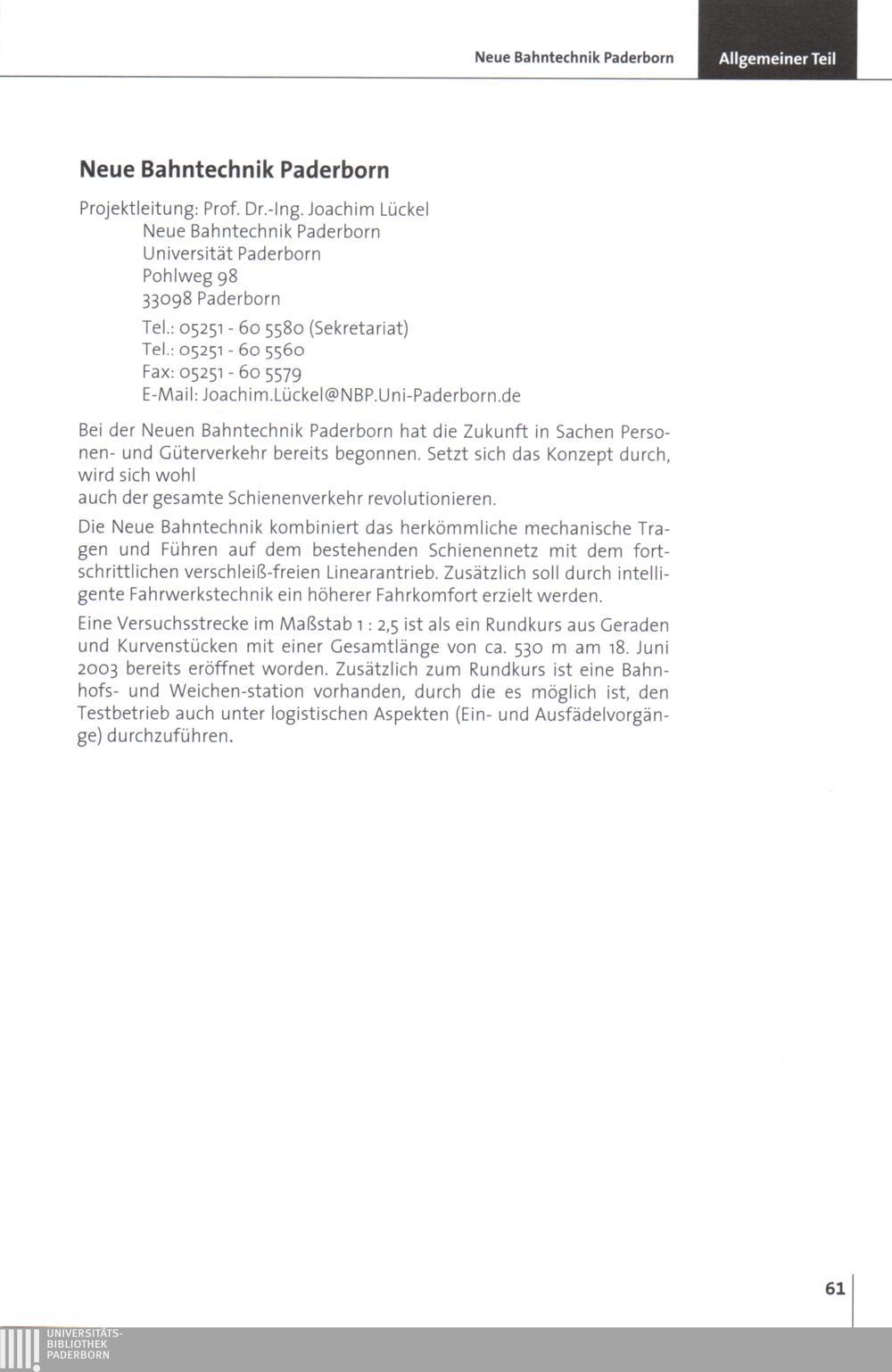 Personal- und Vorlesungsverzeichnis für die Universität Paderborn