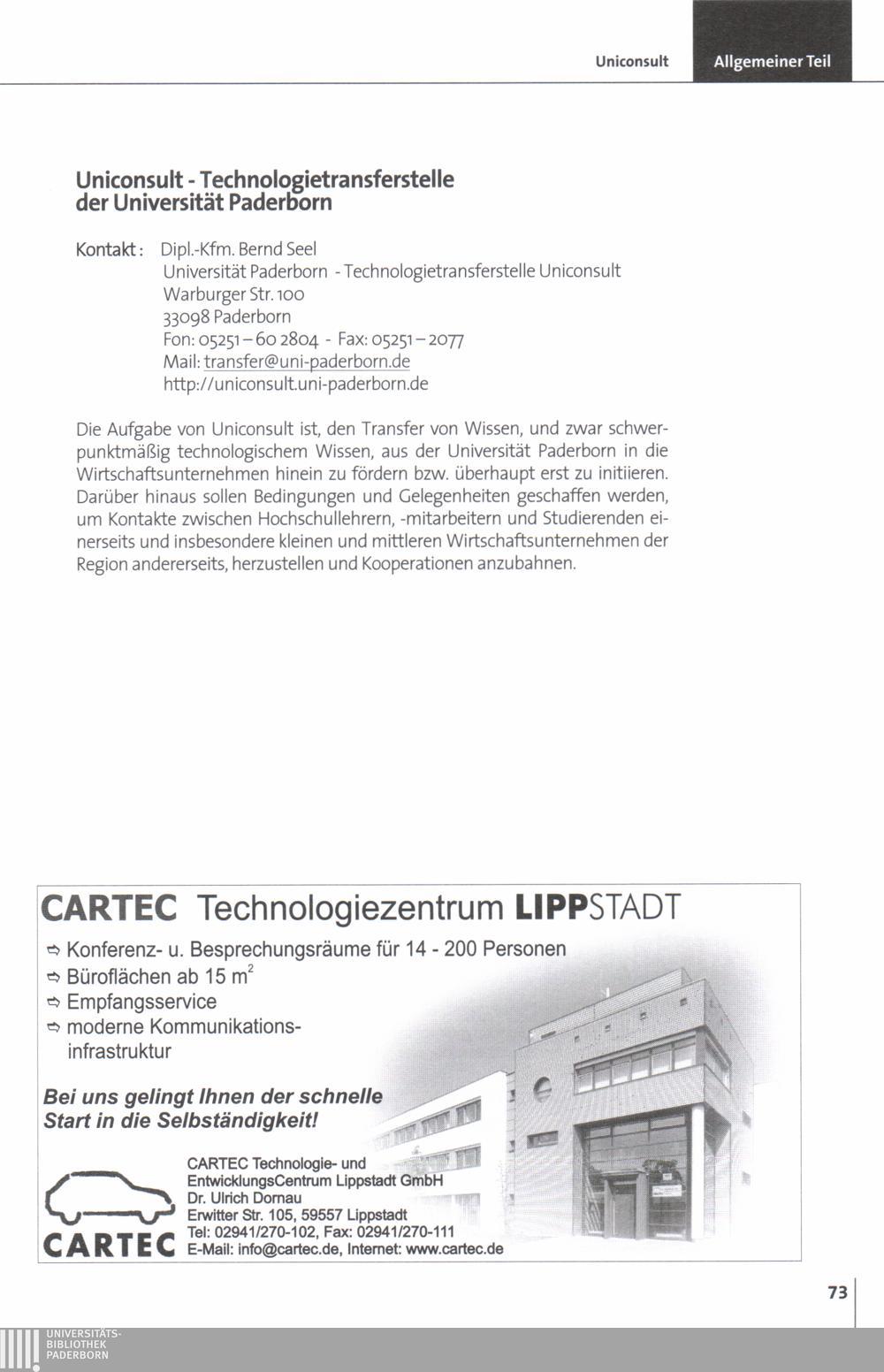 Uniconsult - Technologietransferstelle der Universität Paderborn
