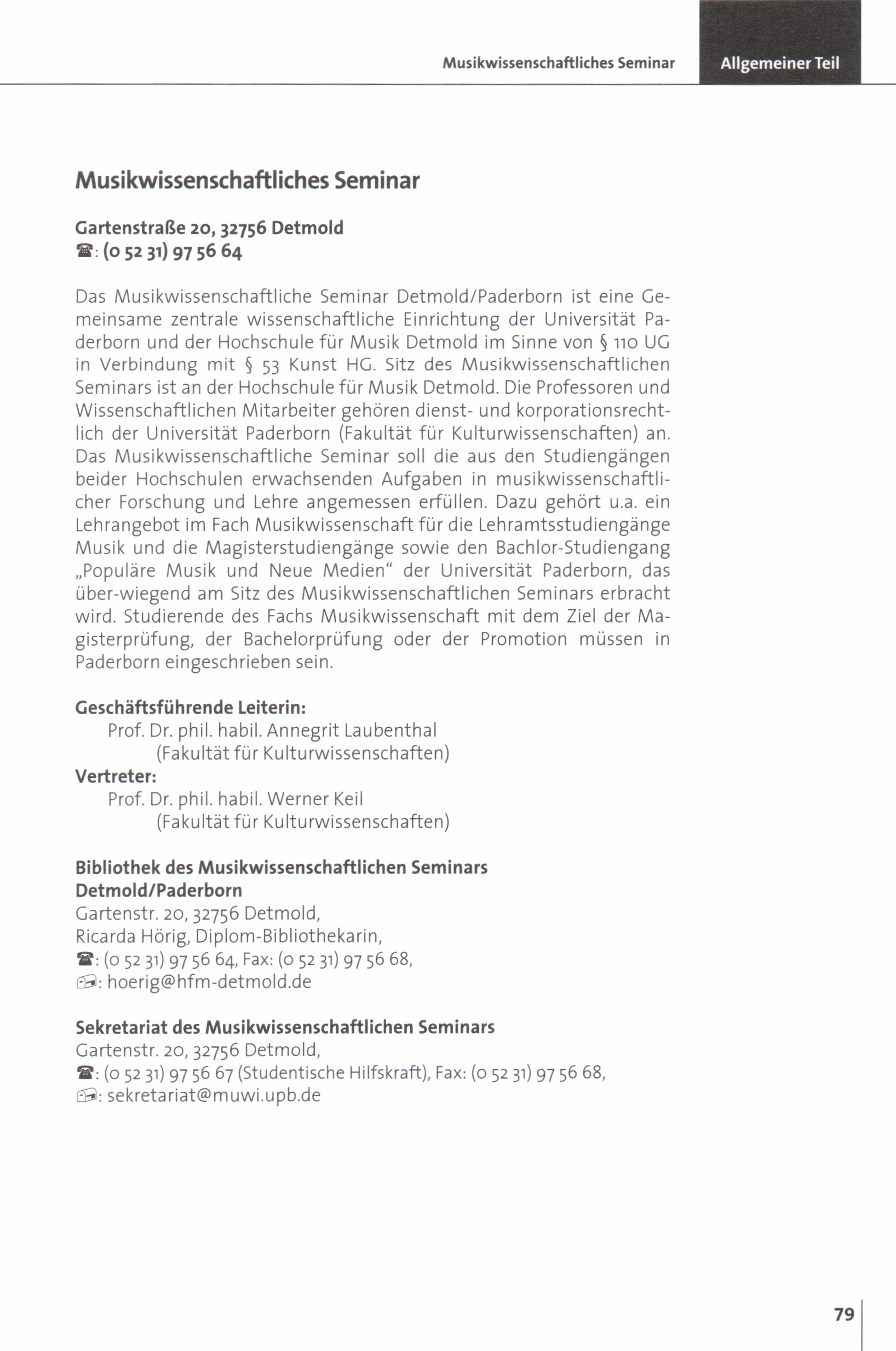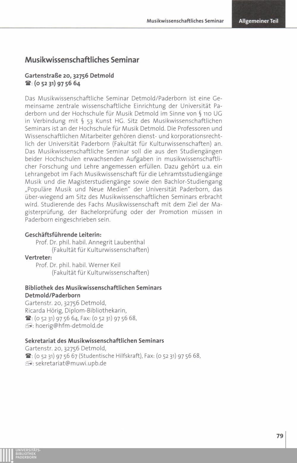 Personal- und Vorlesungsverzeichnis für die Universität Paderborn