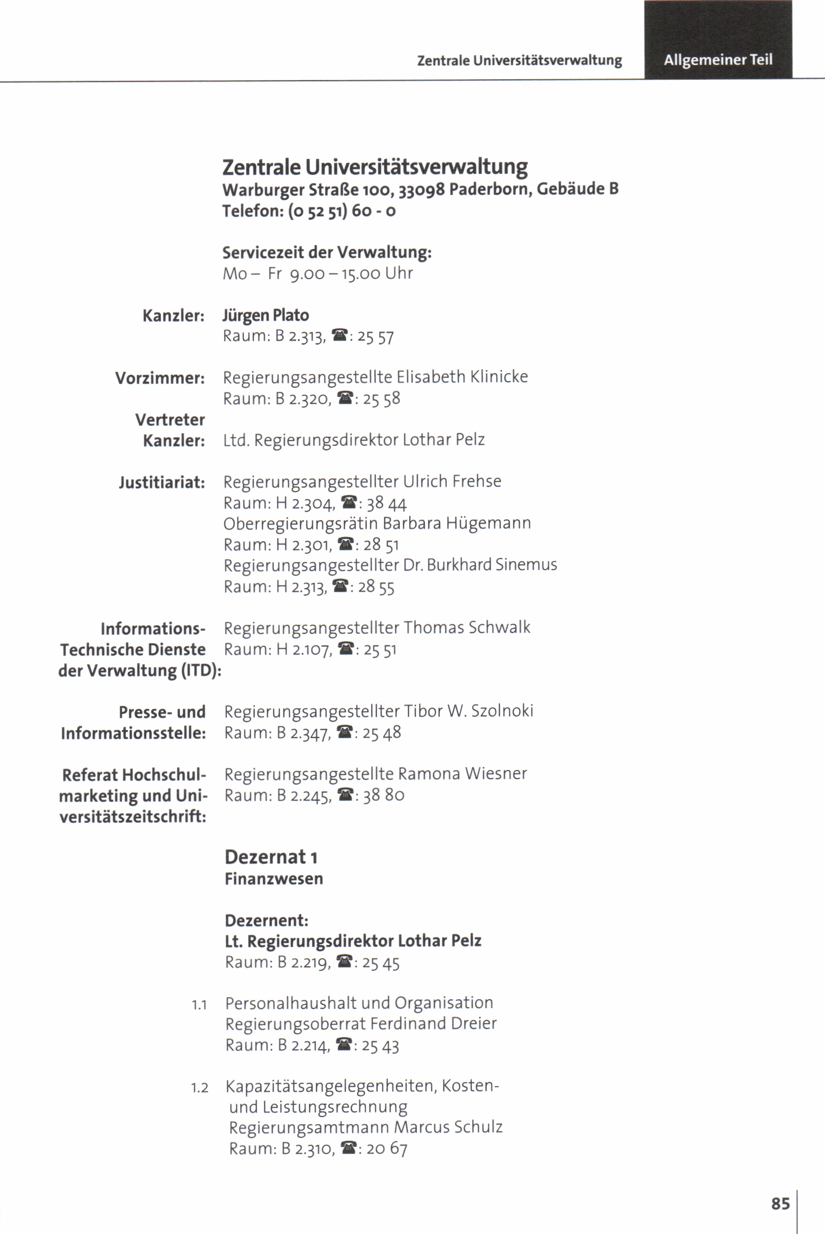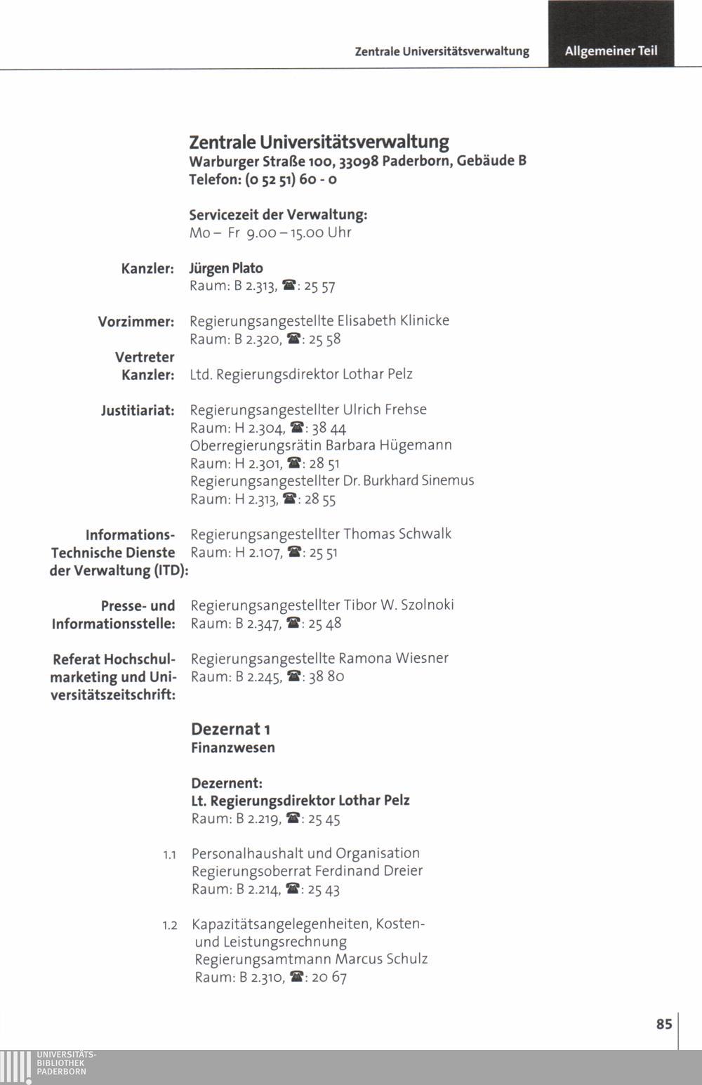 Personal- und Vorlesungsverzeichnis für die Universität Paderborn