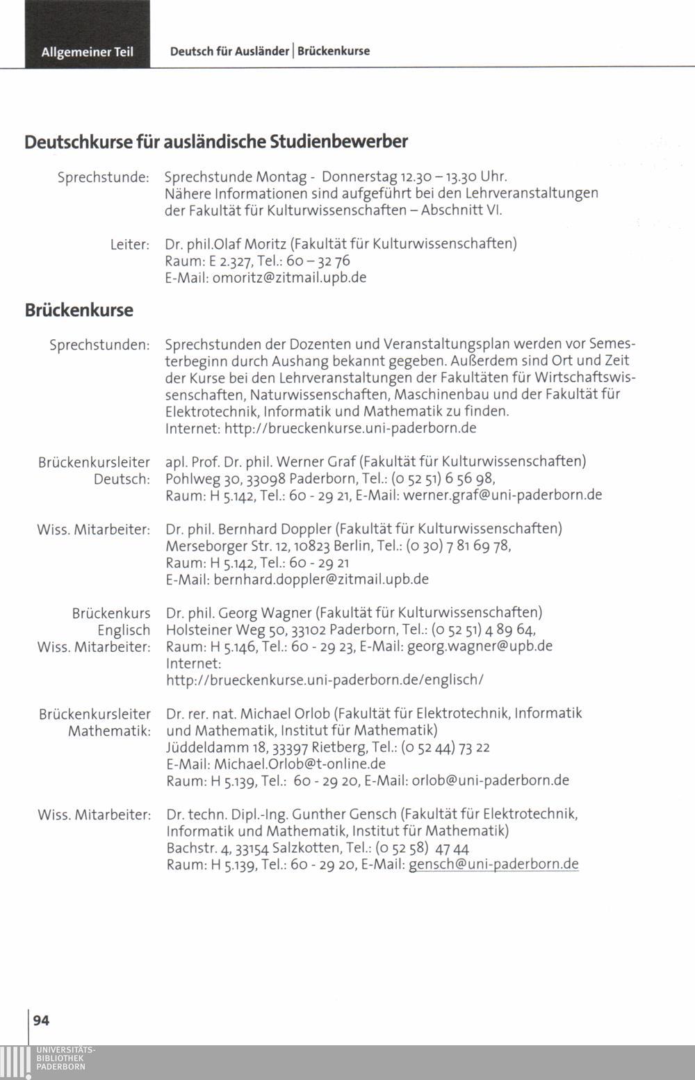 Personal- und Vorlesungsverzeichnis für die Universität Paderborn