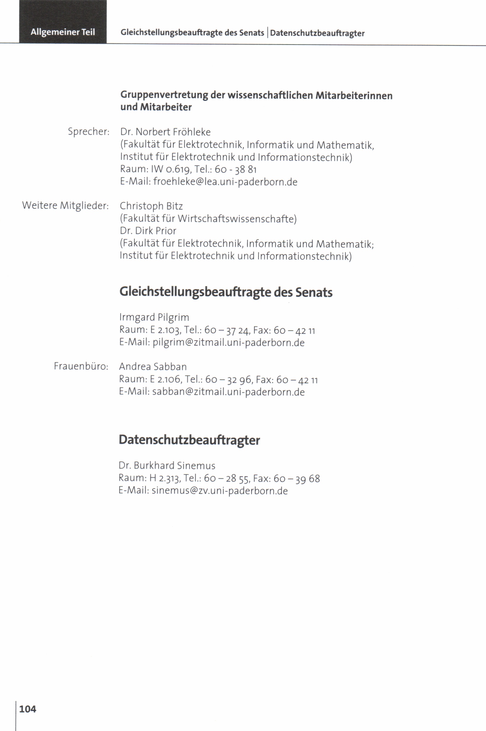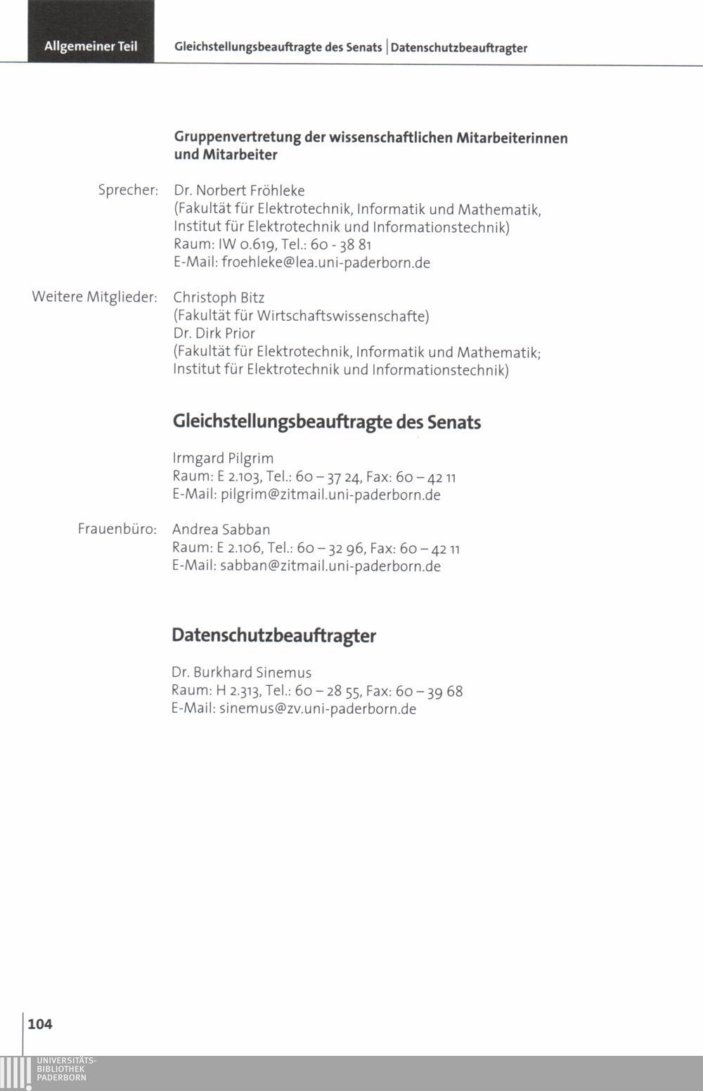 Personal- und Vorlesungsverzeichnis für die Universität Paderborn