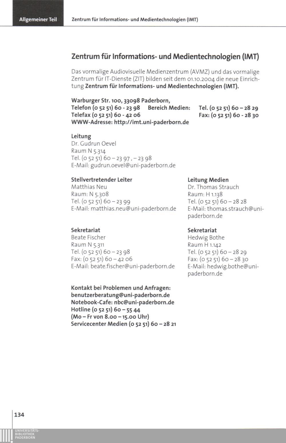 Personal- und Vorlesungsverzeichnis für die Universität Paderborn