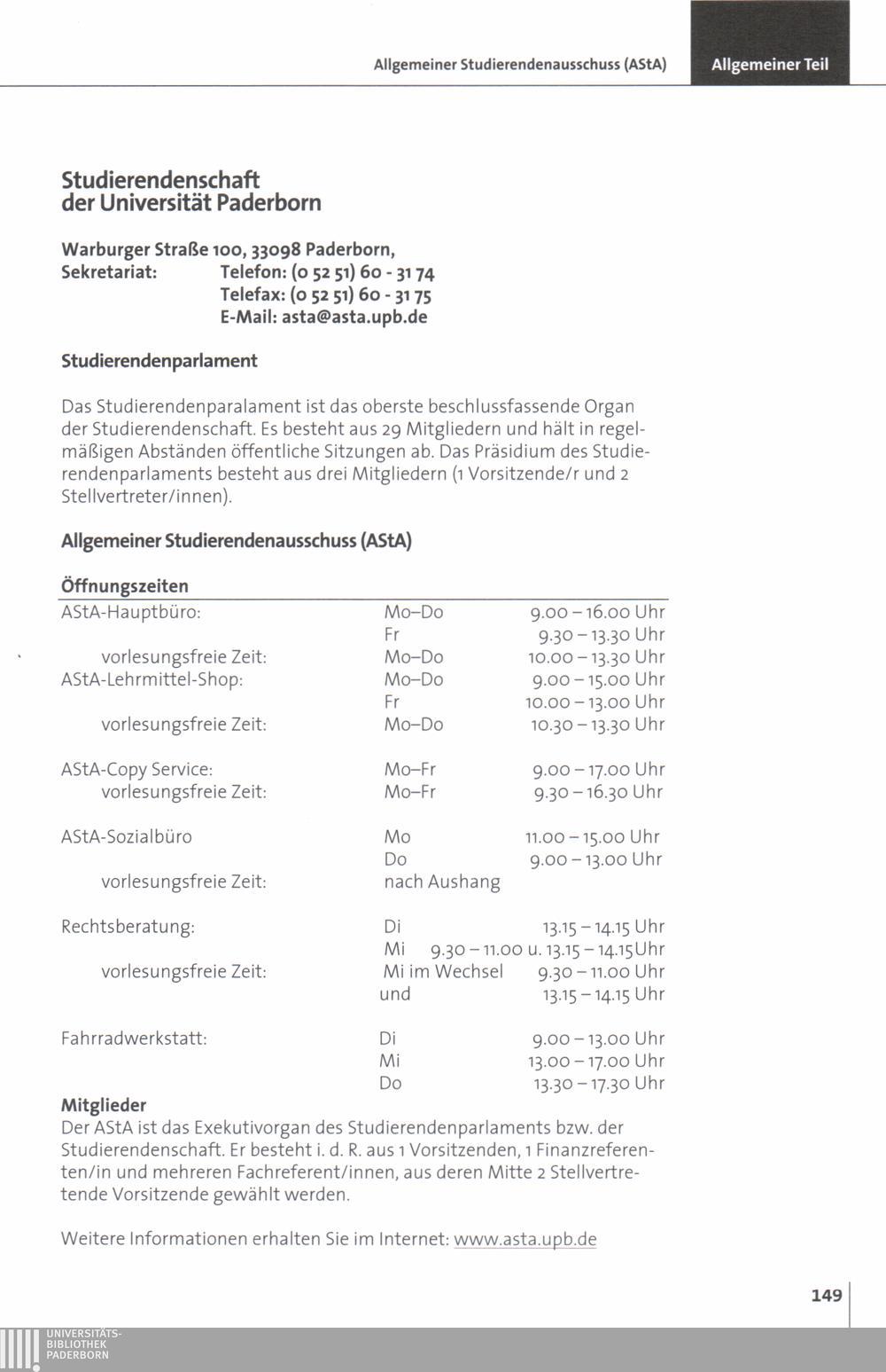 Personal- und Vorlesungsverzeichnis für die Universität Paderborn