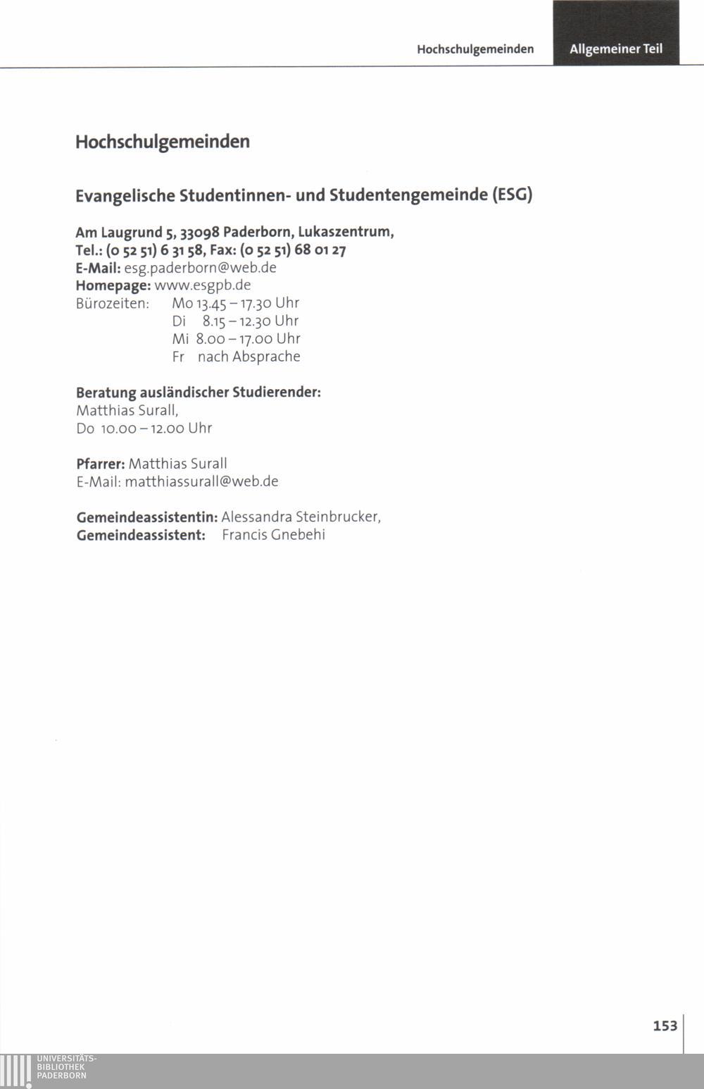 Personal- und Vorlesungsverzeichnis für die Universität Paderborn