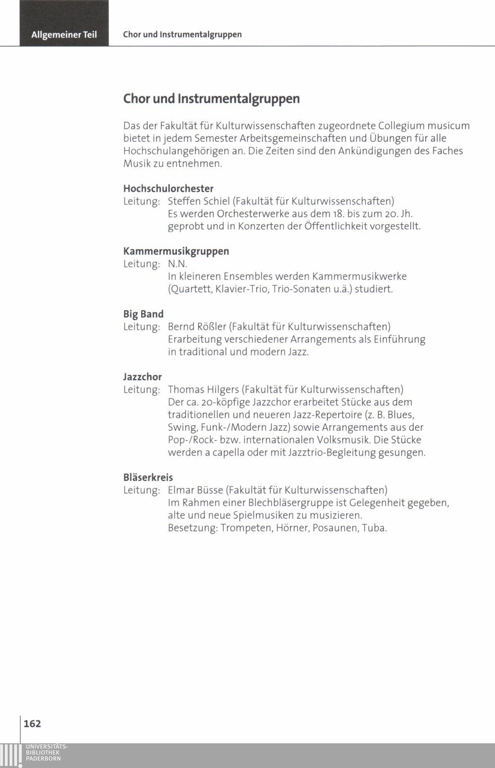 Personal- und Vorlesungsverzeichnis für die Universität Paderborn