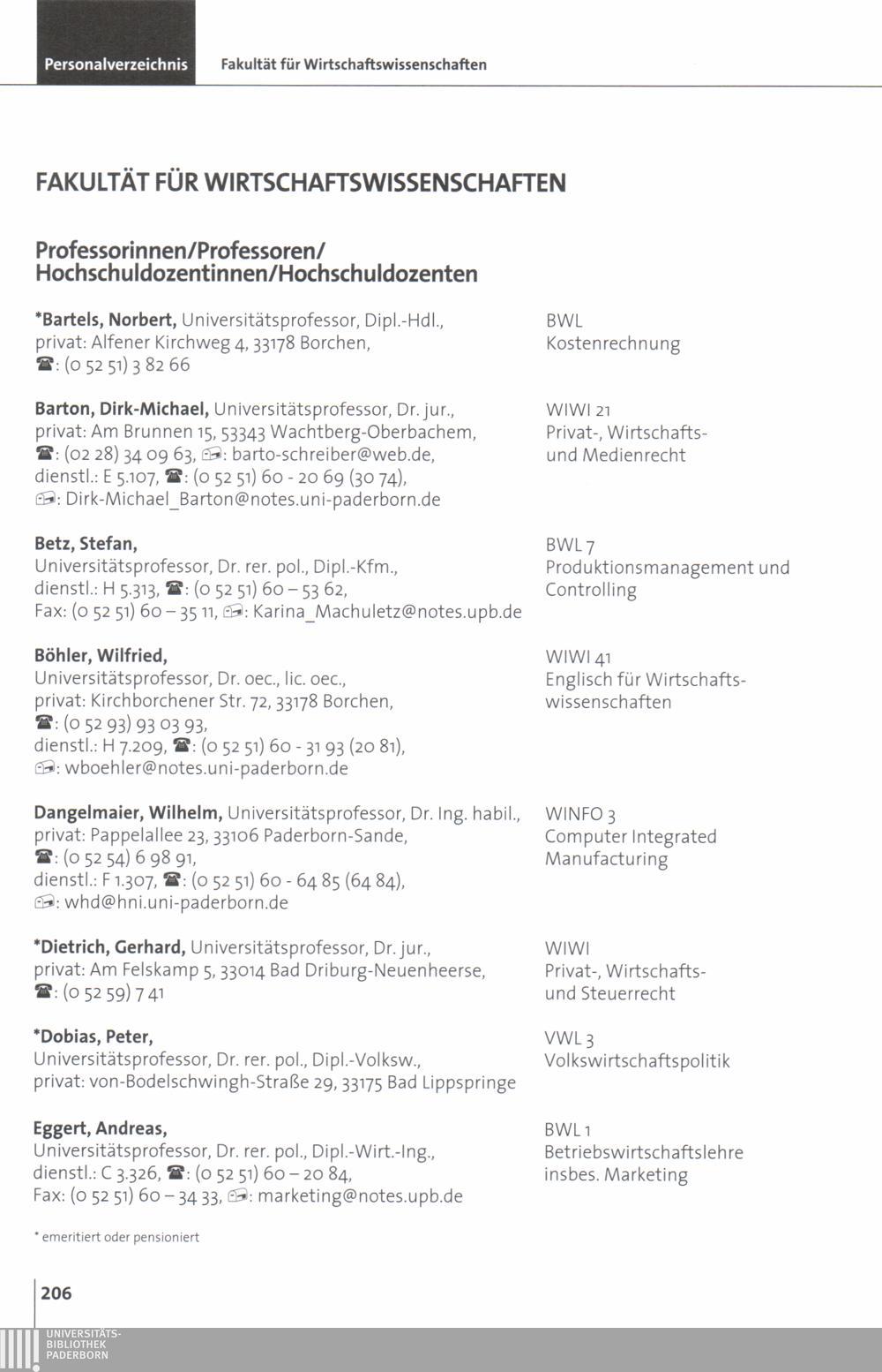 Personal- und Vorlesungsverzeichnis für die Universität Paderborn