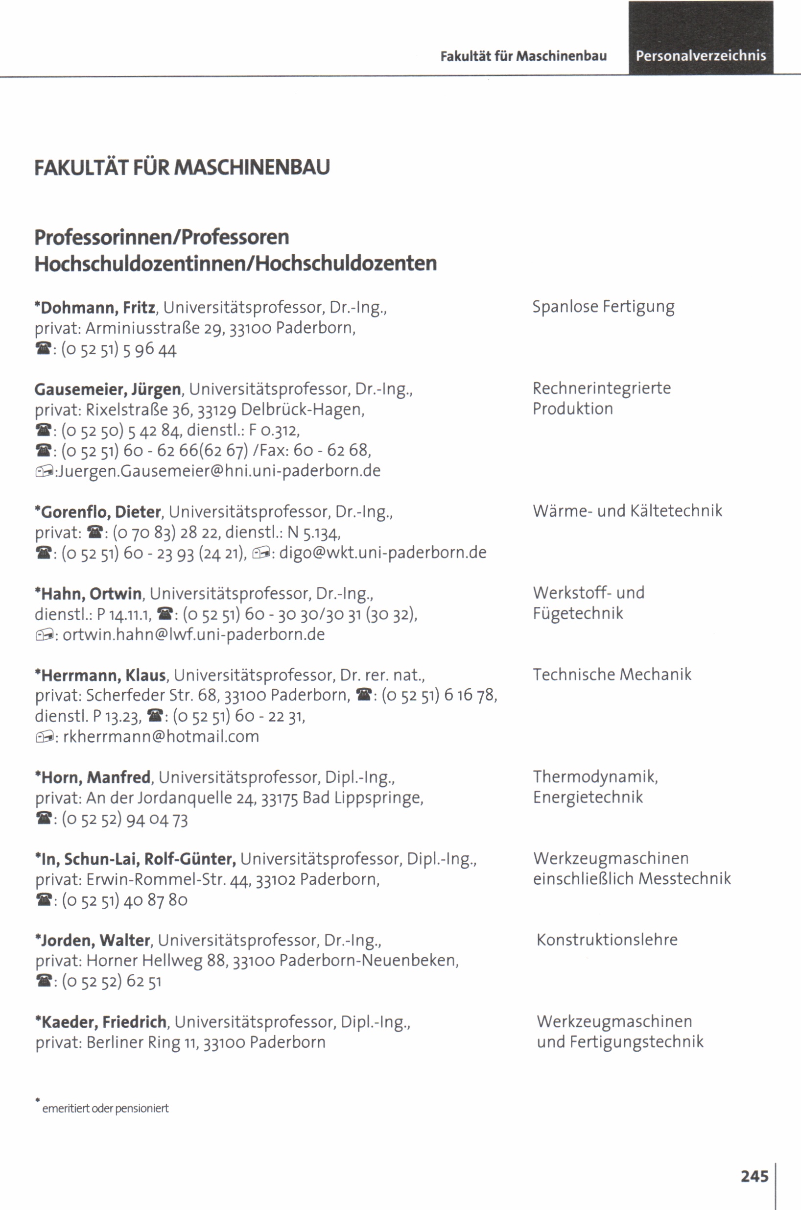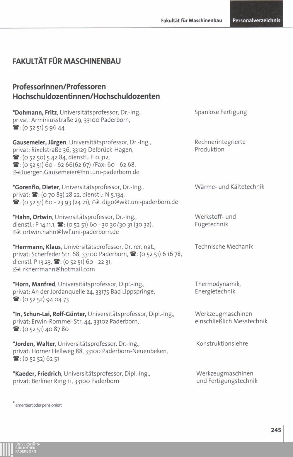 Personal- und Vorlesungsverzeichnis für die Universität Paderborn
