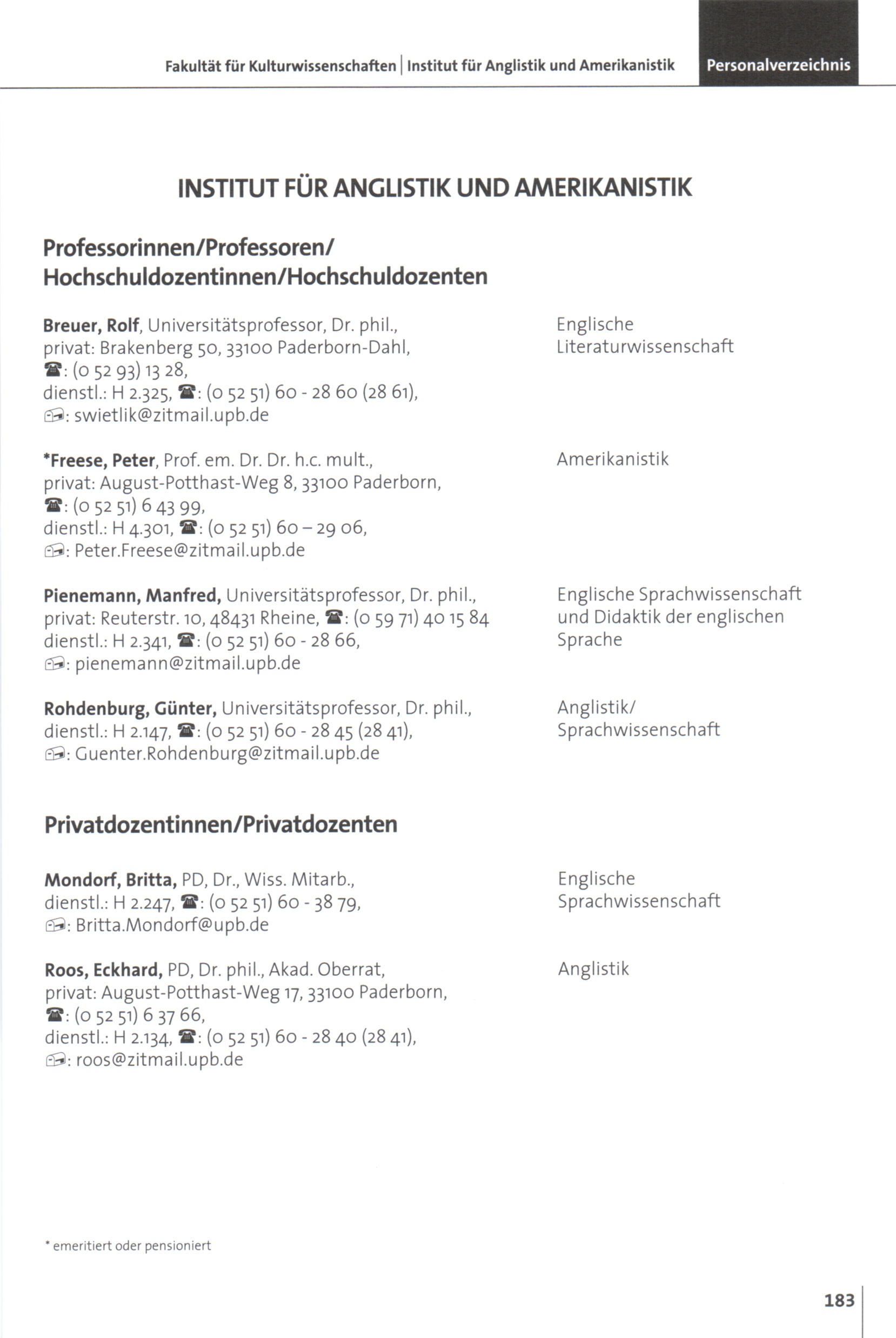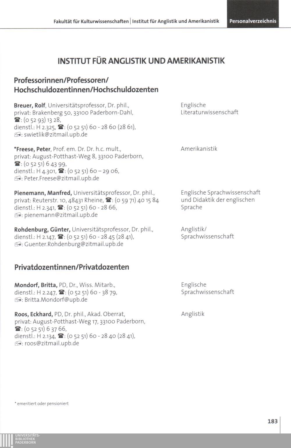 Personal- und Vorlesungsverzeichnis für die Universität Paderborn