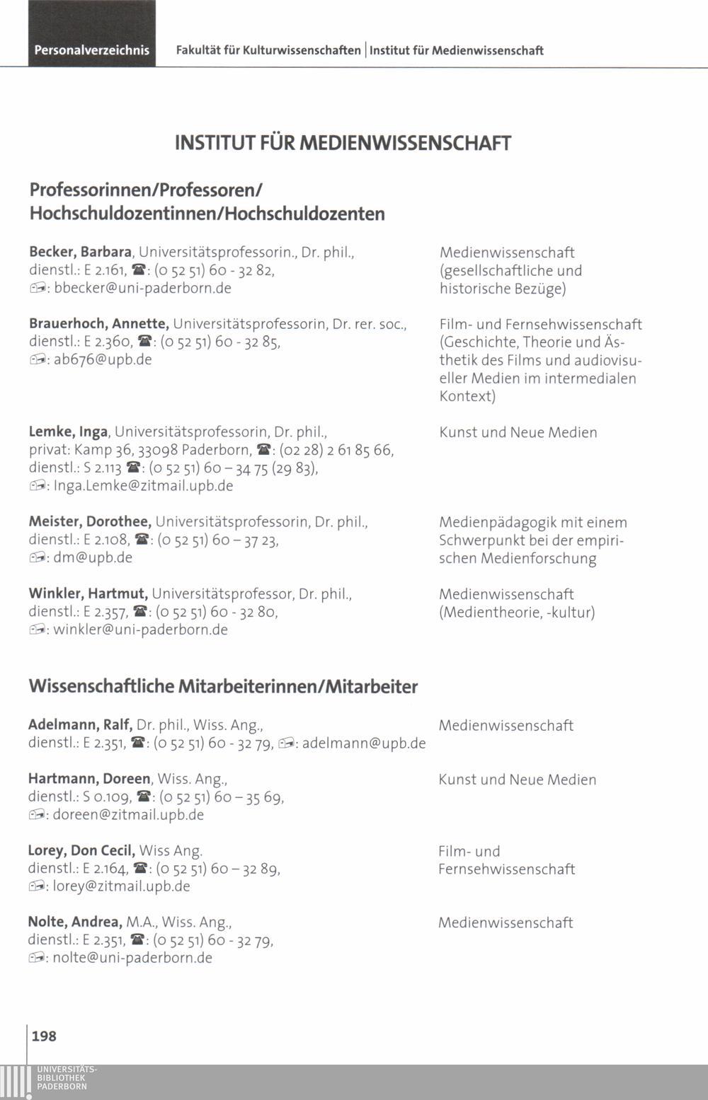 Personal- und Vorlesungsverzeichnis für die Universität Paderborn
