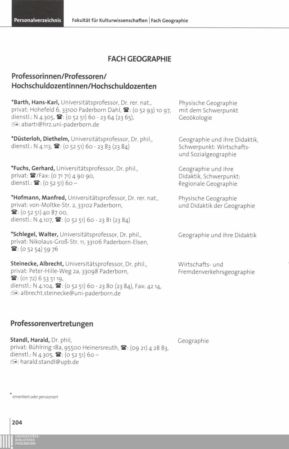 Personal- und Vorlesungsverzeichnis für die Universität Paderborn