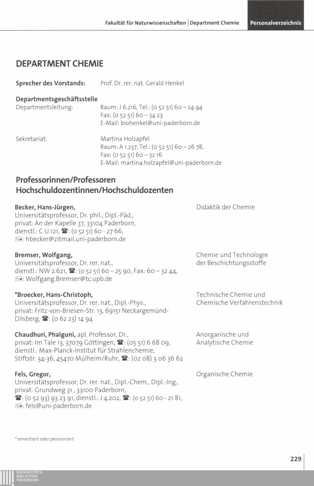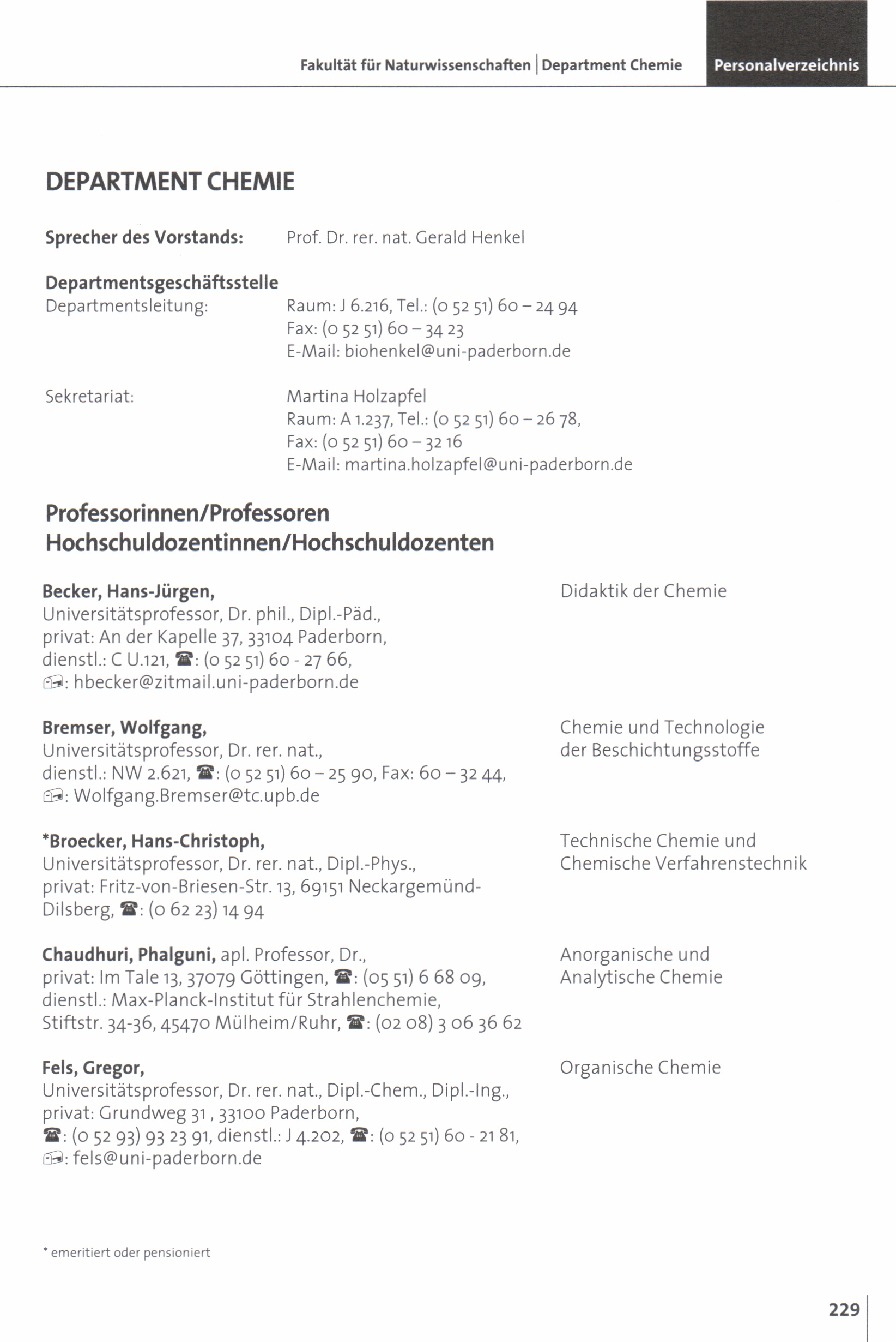 Personal- und Vorlesungsverzeichnis für die Universität Paderborn