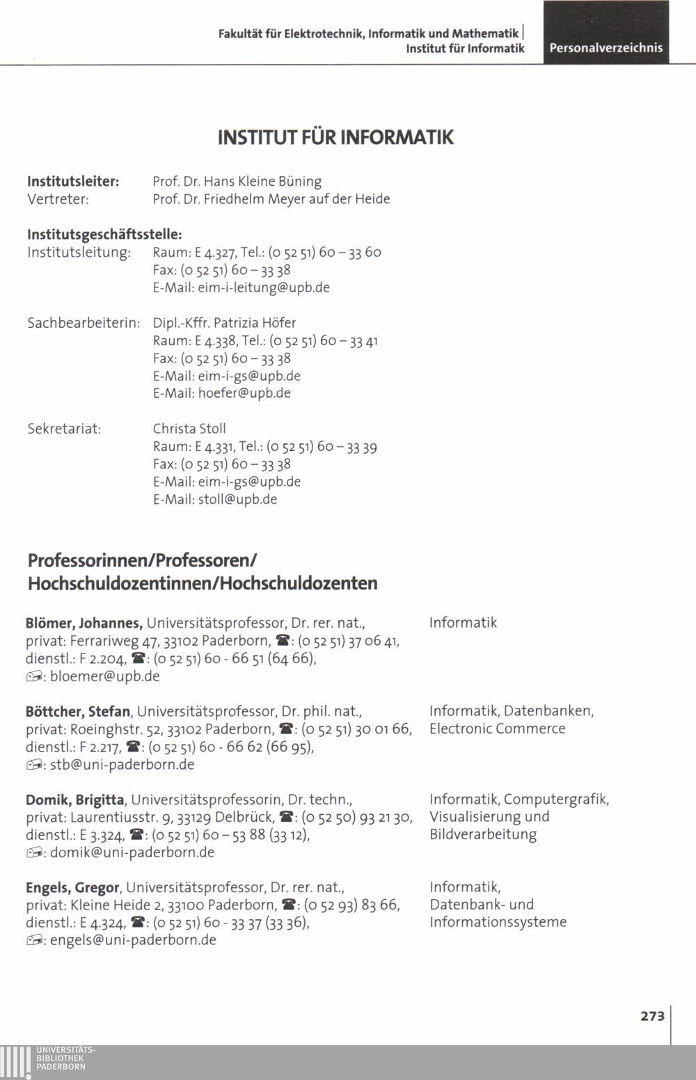 Personal- und Vorlesungsverzeichnis für die Universität Paderborn