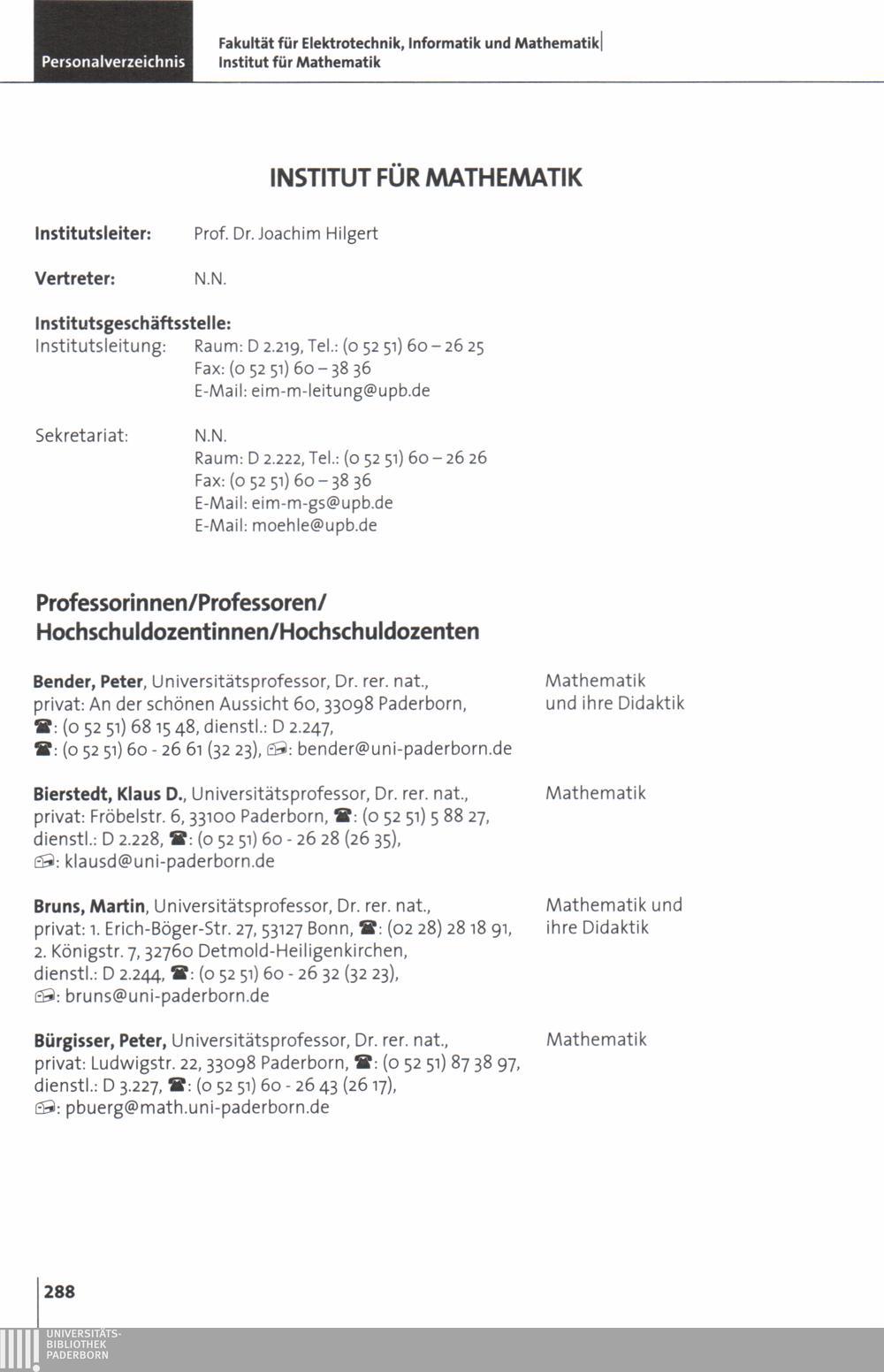 Personal- und Vorlesungsverzeichnis für die Universität Paderborn