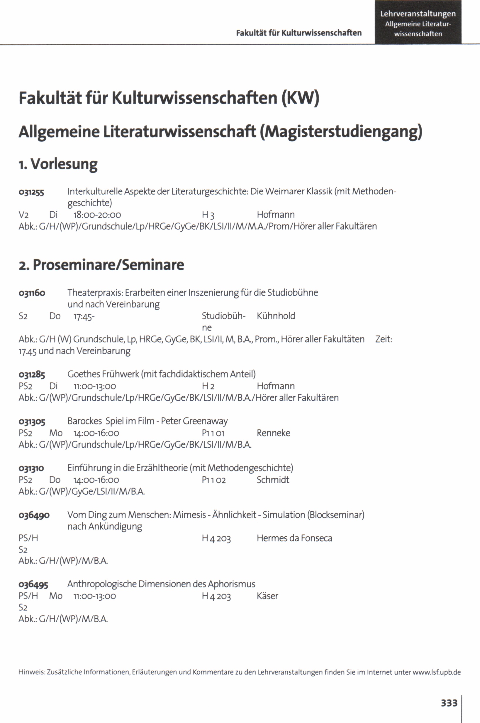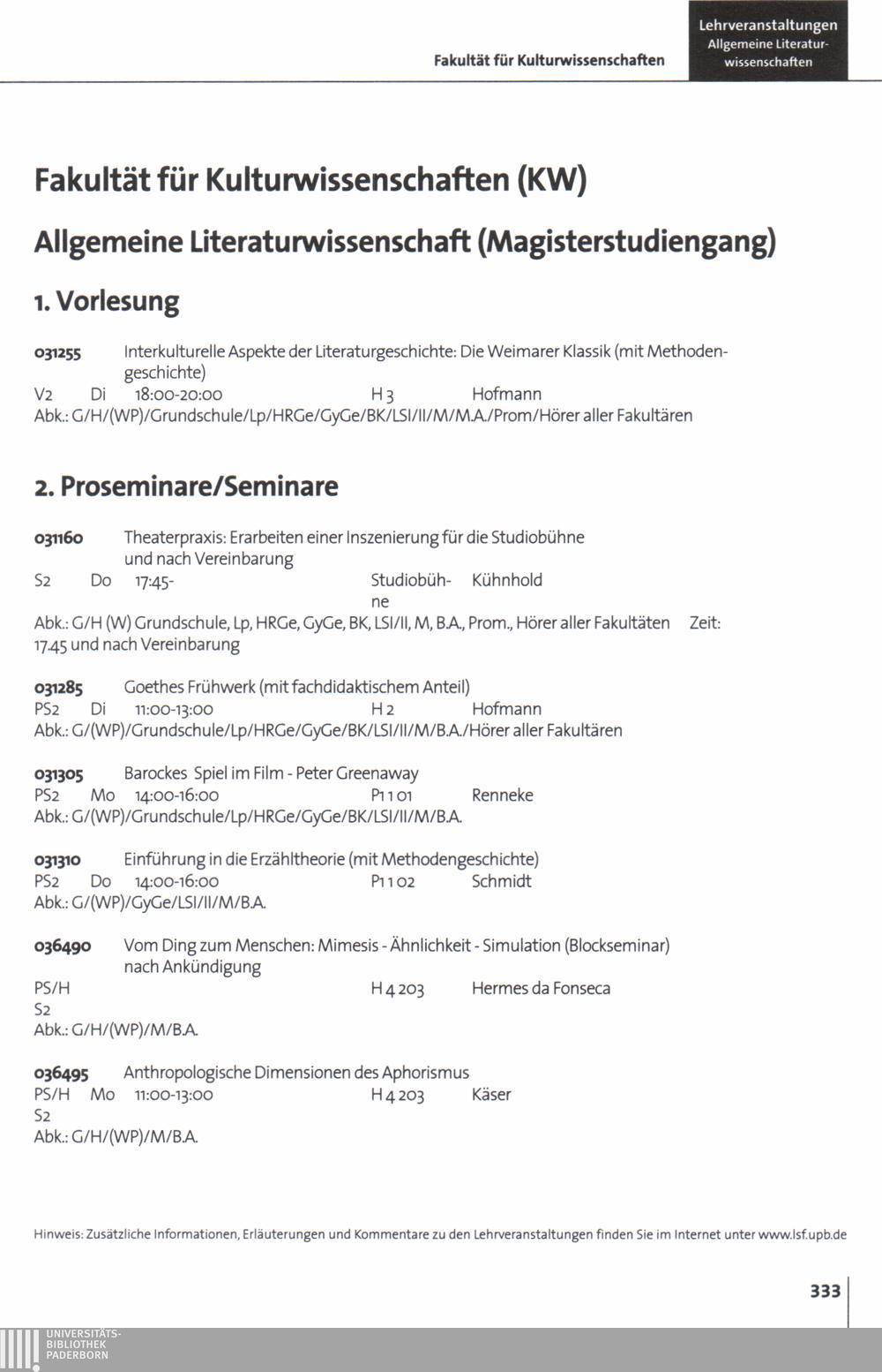 Personal- und Vorlesungsverzeichnis für die Universität Paderborn