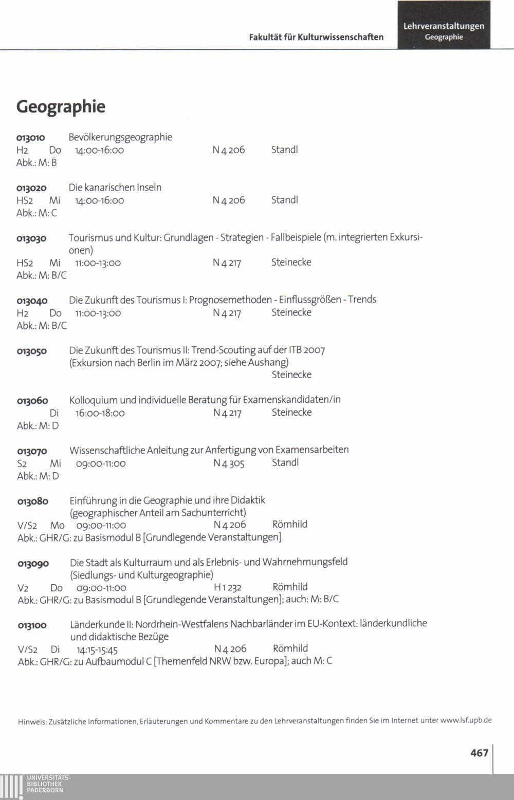 Personal- und Vorlesungsverzeichnis für die Universität Paderborn