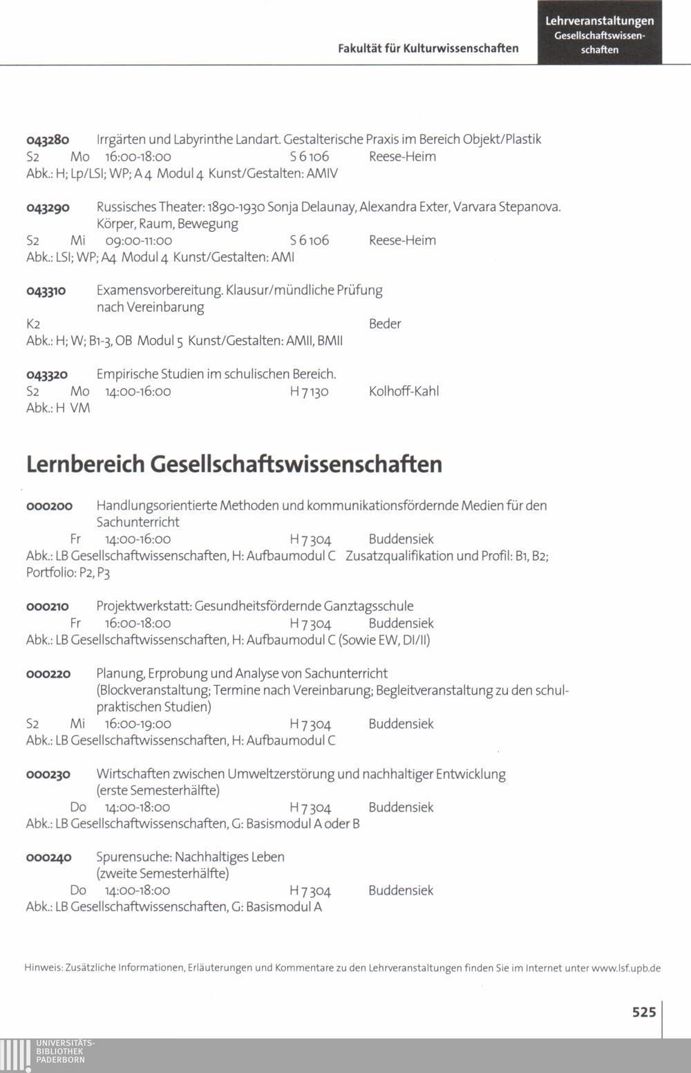 Personal- und Vorlesungsverzeichnis für die Universität Paderborn