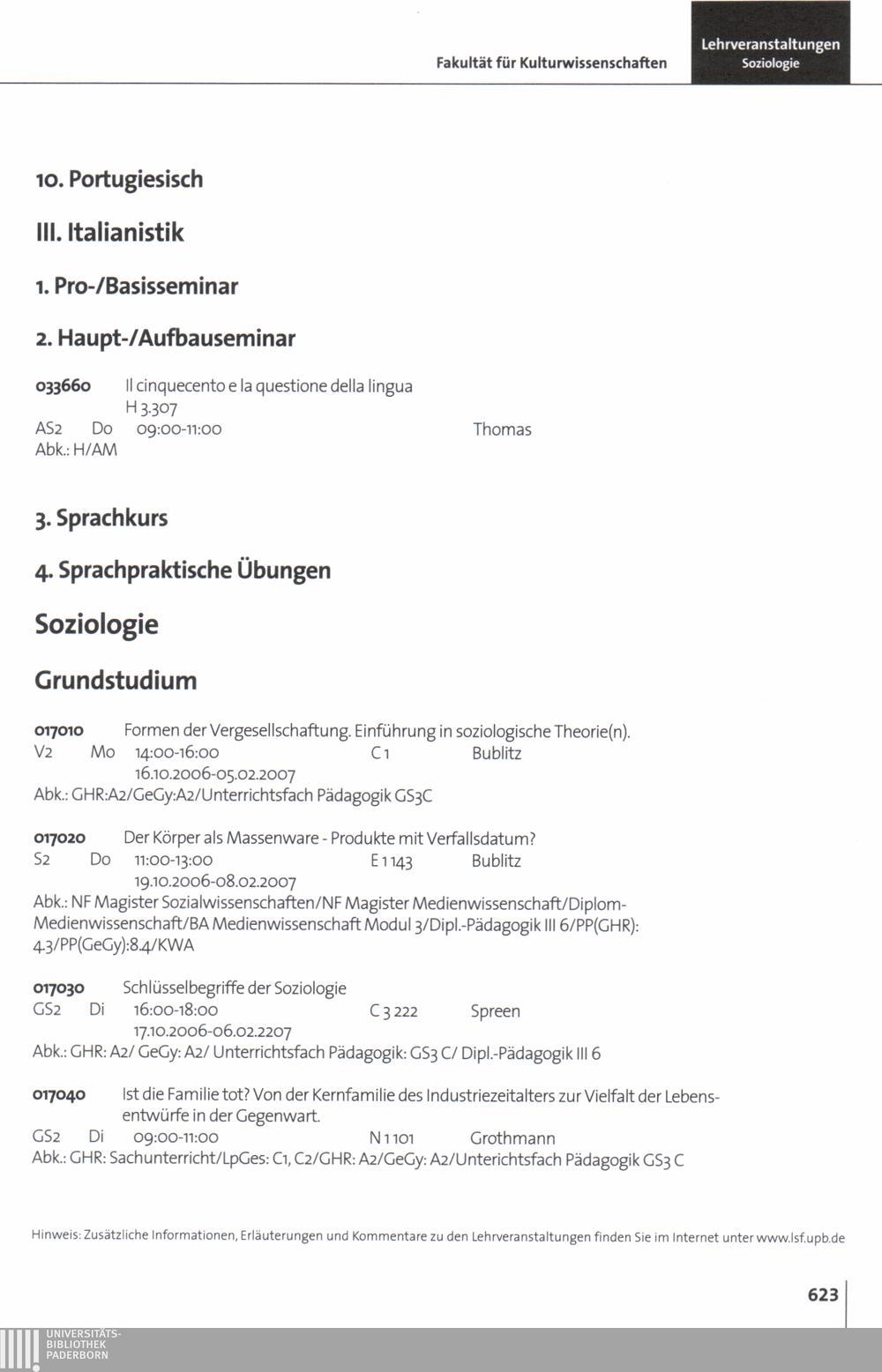Personal- und Vorlesungsverzeichnis für die Universität Paderborn